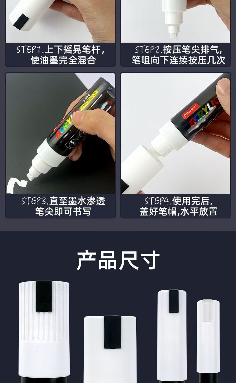 Sort by color 0.7mm white single acrylic pen,2mm white single acrylic pen,8mm white single acrylic pen,15mm white single acrylic pen,0.7mm white 3 acrylic pens,2mm white 3 acrylic pens,8mm white 3 acrylic pens,15mm white 3 acrylic pens,0.7mm white 2 acrylic pens,2mm white acrylic pen,8mm white 2 acrylic pens,15mm white 2 acrylic pens,Complete set of 4 white acrylic pens