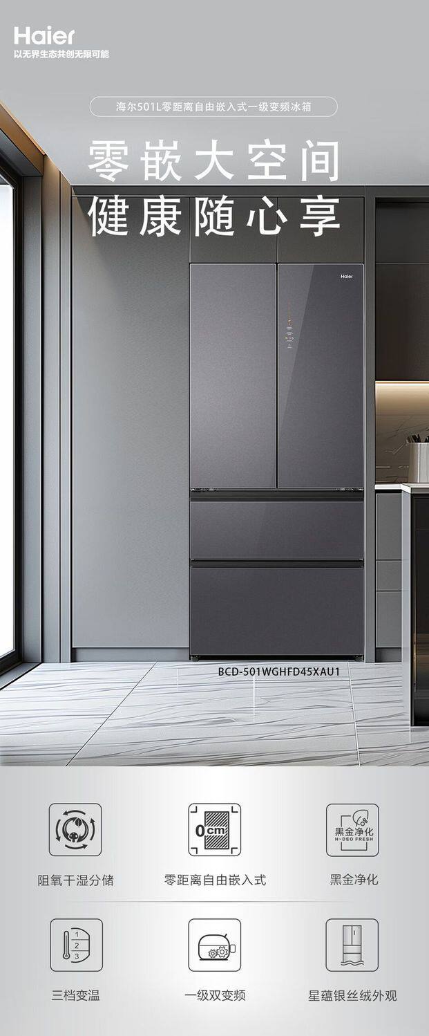 Haier Refrigerator French Multi-Door Zero-Distance Embedded Air-Cooled Frost-Free First-Level Frequency Conversion Bcd-501Wghfd45Xau1