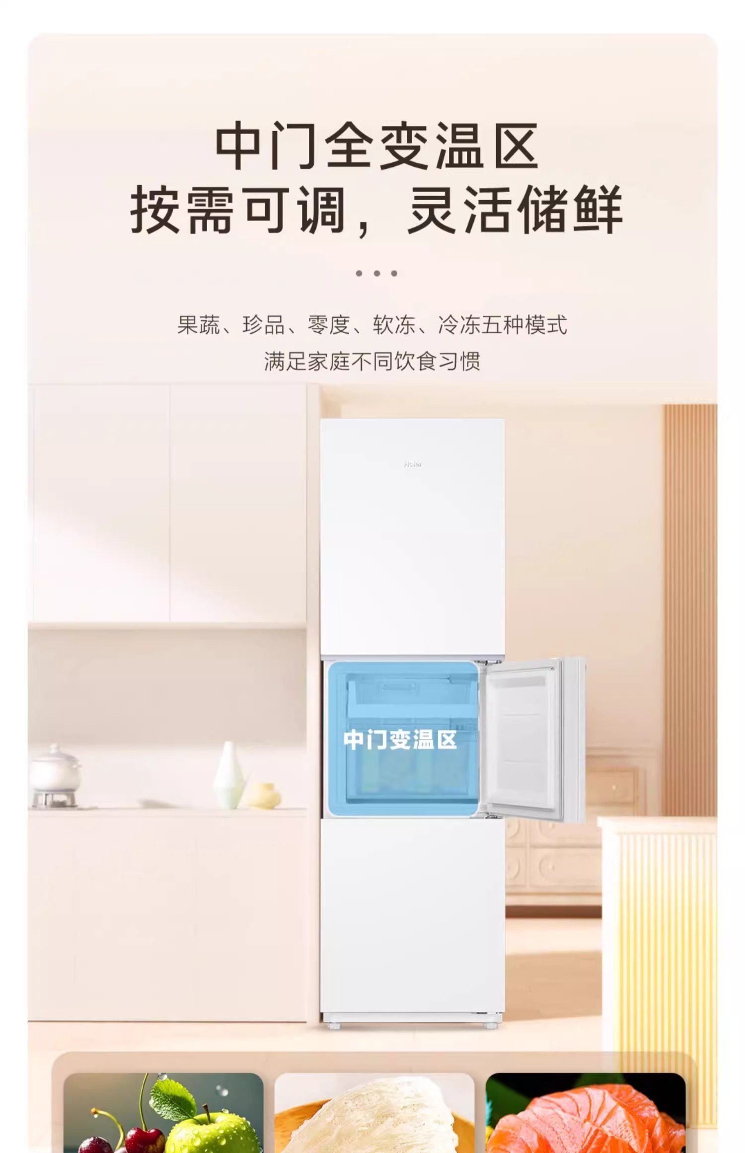 Haier Bcd-251Wghc3E7Wv Three-Door Household Air-Cooled First-Class Dual-Inverter Refrigerator