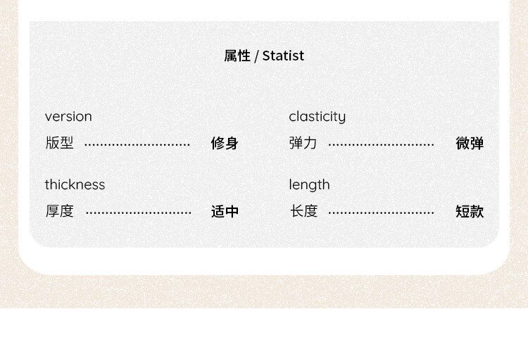 Material Composition Viscose Fiber (Viscose Fiber) 46% Cotton 46% Polyurethane Elastic Fiber (Spandex) 8%