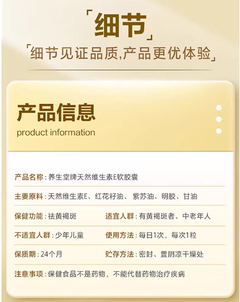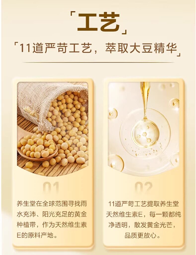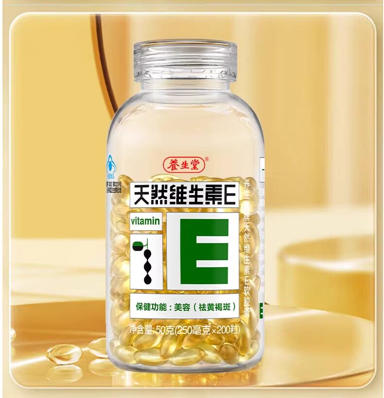 Color Classification Health Hall Natural Vitamin E 200 Capsules*1 Box,Special Offer: Bare Bottle Without Outer Packaging and Anti-Counterfeiting] Yangshengtang Natural Vitamin E 200 Capsules*1 Bottle