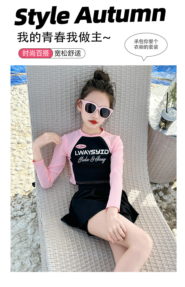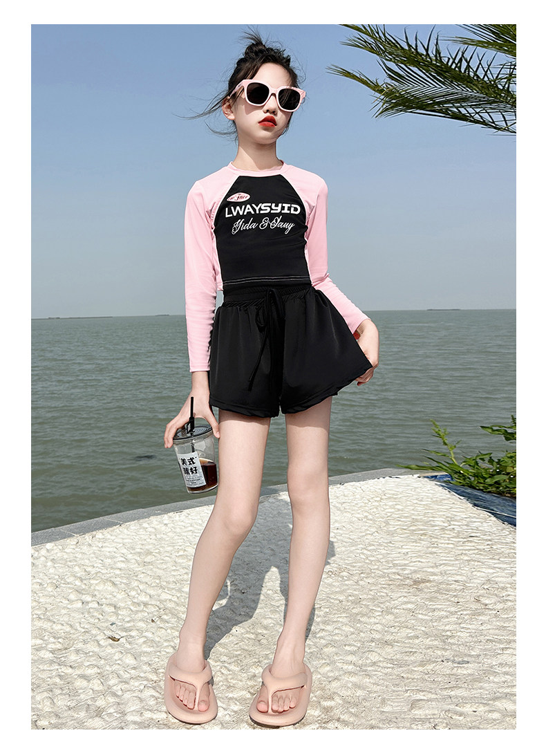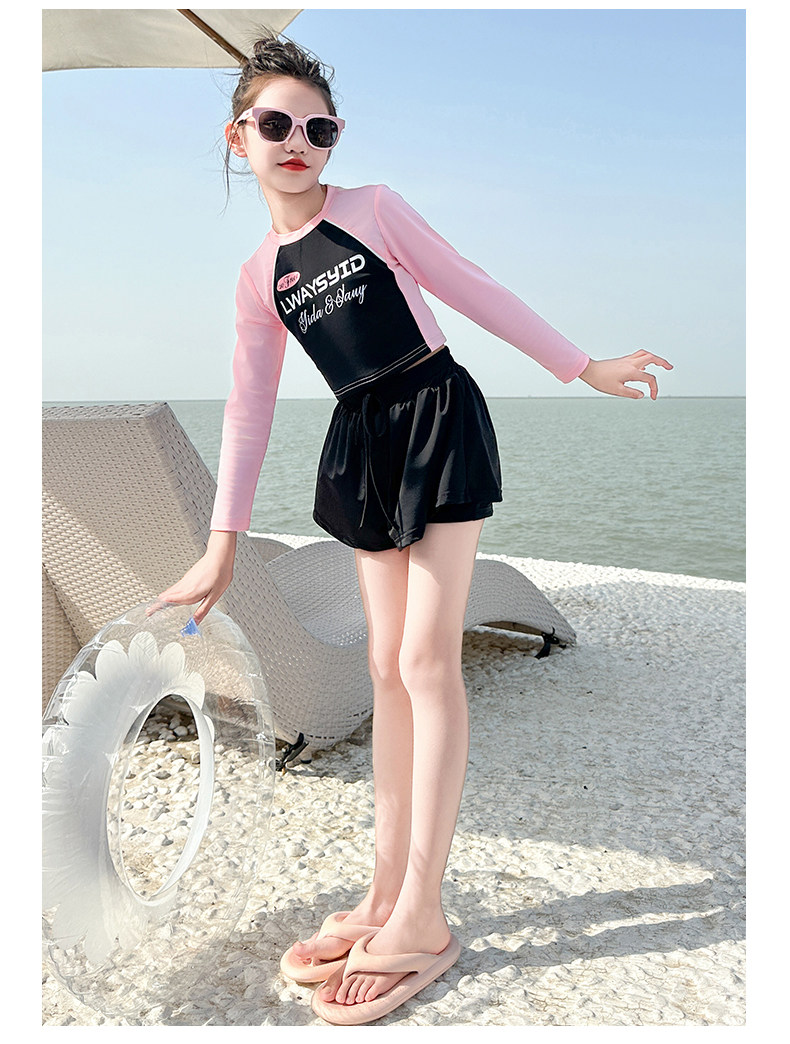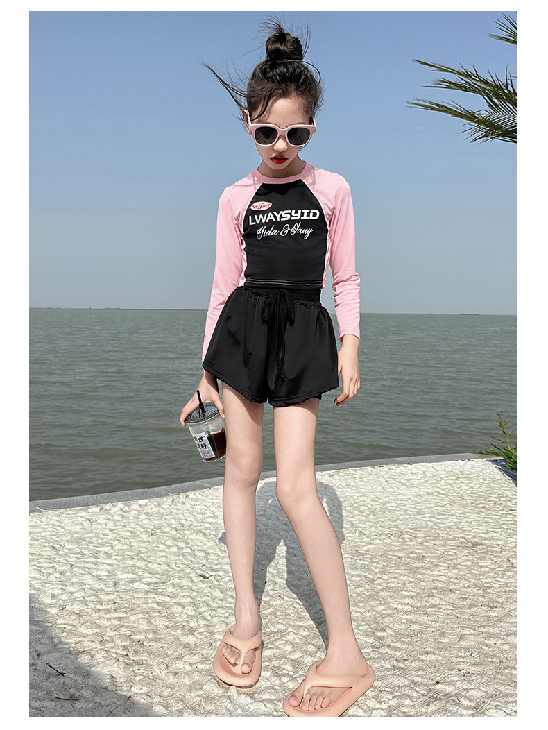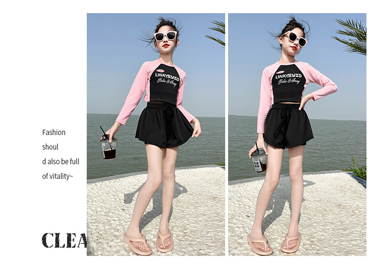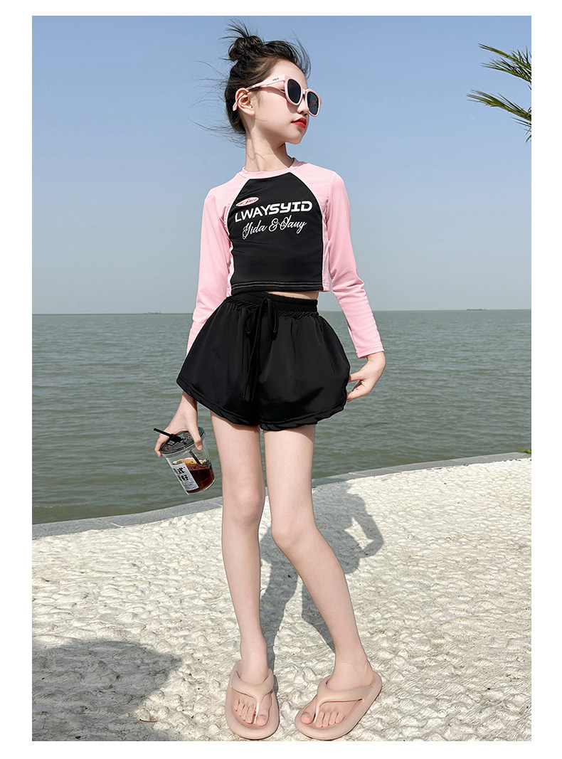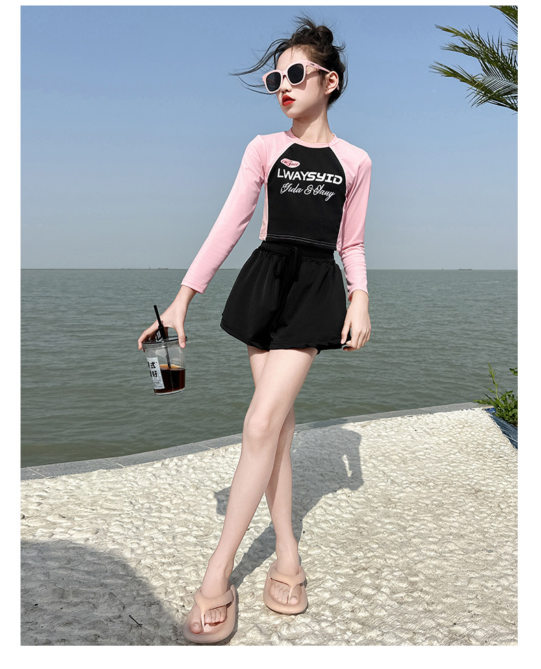 Girls' Swimsuit Set Summer 2026 New Style for Older Girls, Two-Piece Swimwear, Children's Summer Fashion Long-Sleeve Swimsuit
