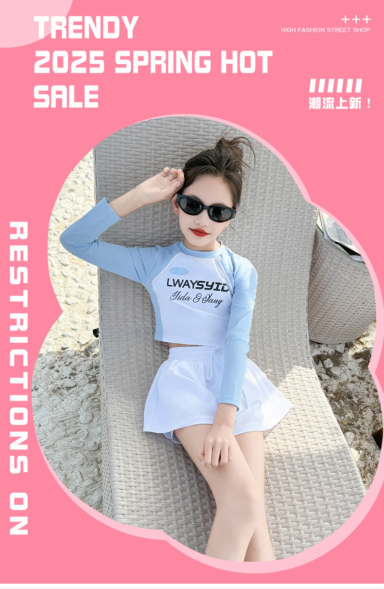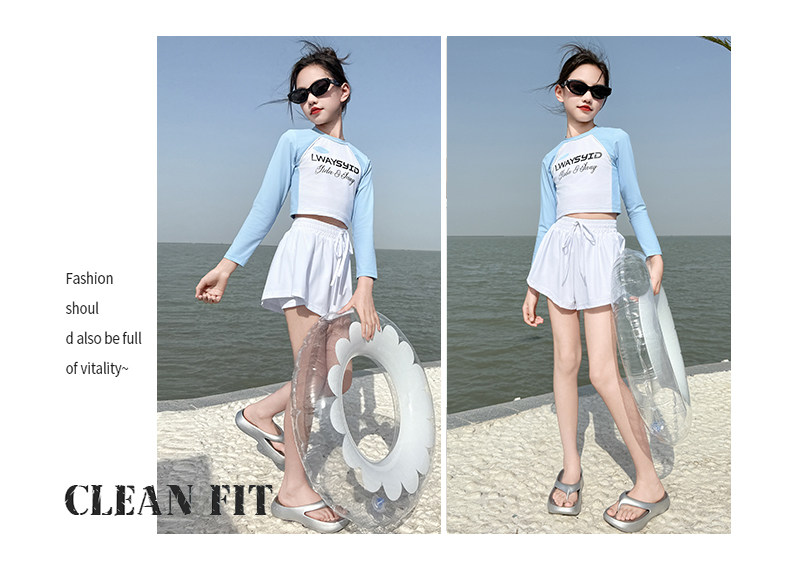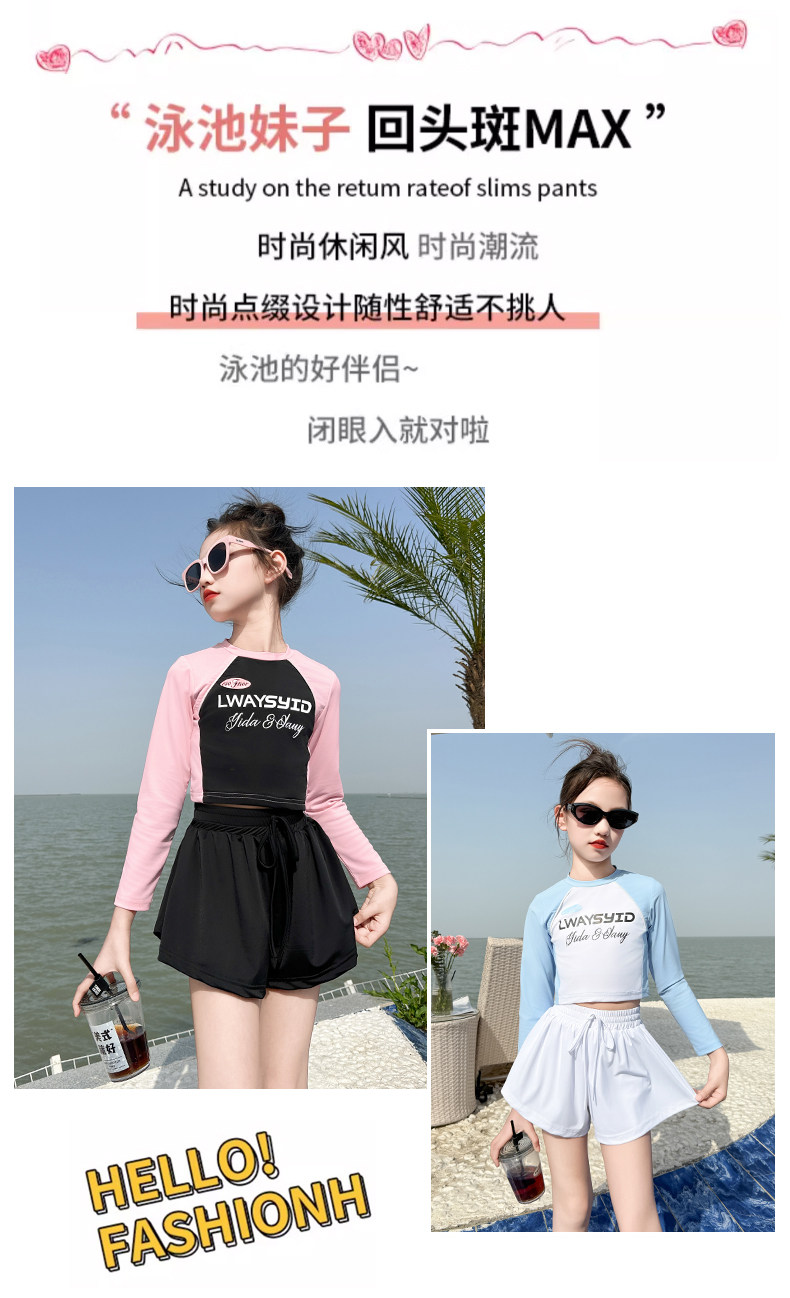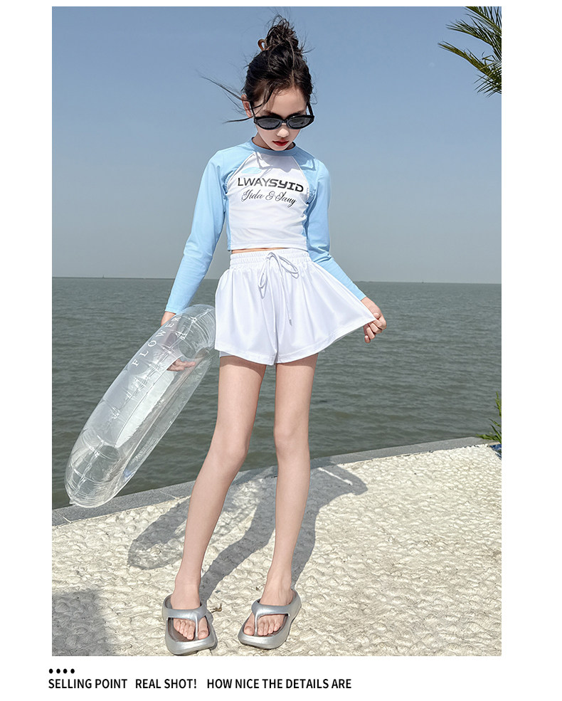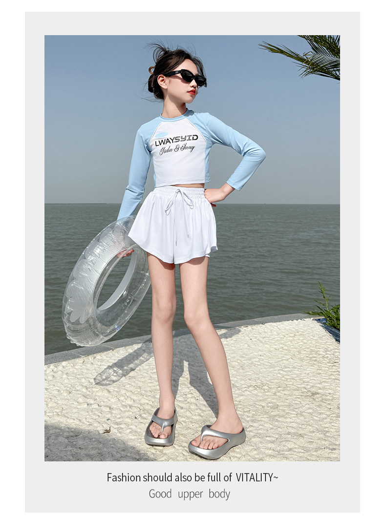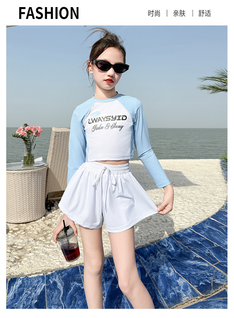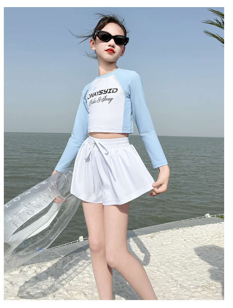 Girls' Swimsuit Set Summer 2026 New Style for Older Girls, Two-Piece Swimwear, Children's Summer Fashion Long-Sleeve Swimsuit