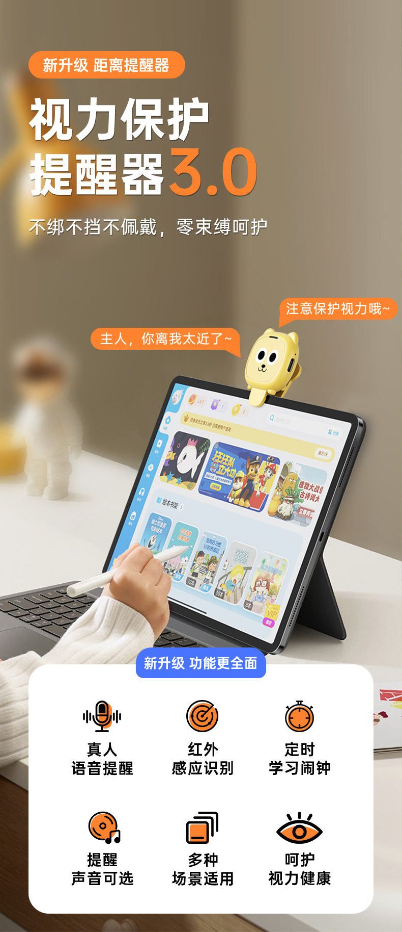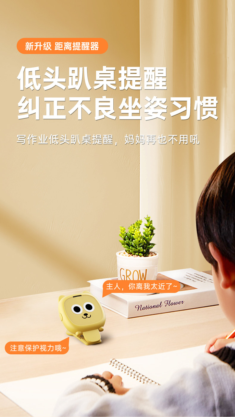 Intelligent Distance Reminder Device, Children's Sitting Posture Corrector, Anti-Head-Down Vision Protector for Primary School Students When Writing and Looking at Their Phones