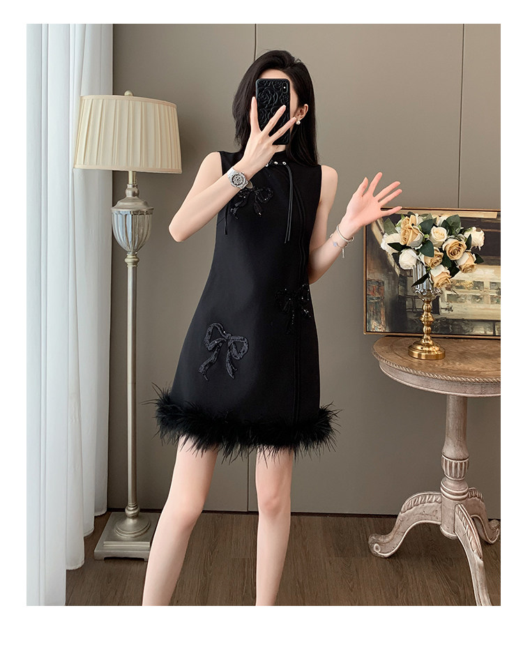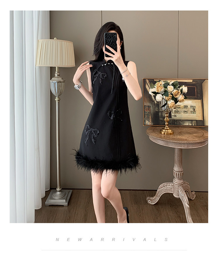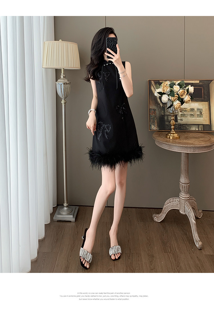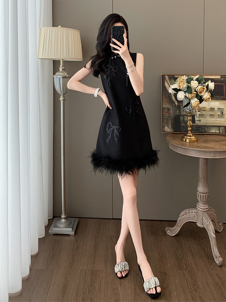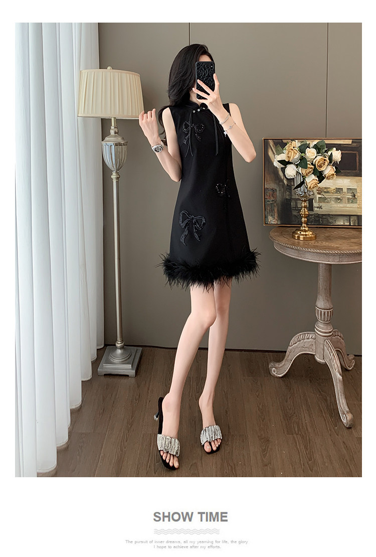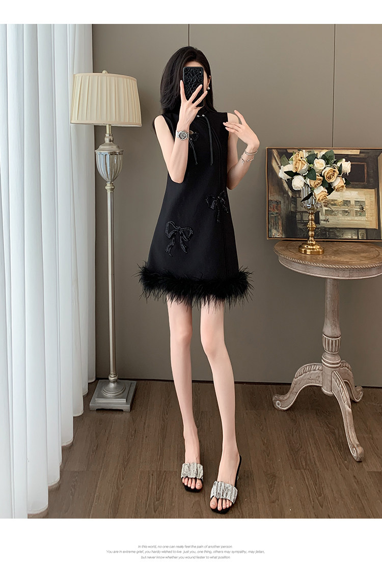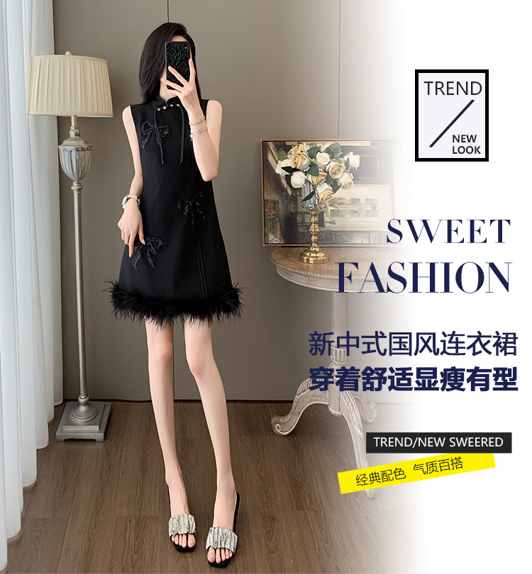 Summer Chinese-Style Fashion, Stunning New Chinese-Style Sleeveless Off-Shoulder Dress, Feminine Button-Up Modified Cheongsam with Tassels