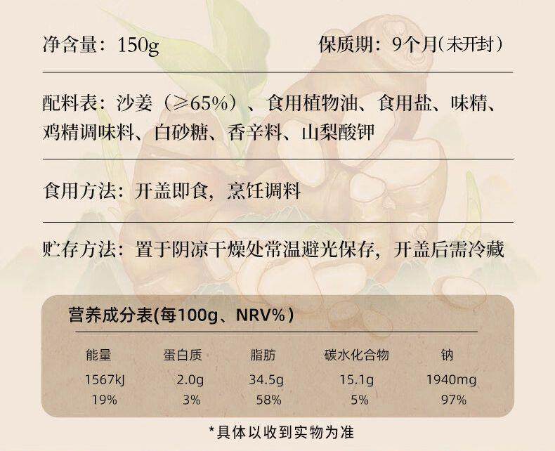 Taste 150g Premium Sand Ginger (1 Bottle),Shajiang 150g (High Quality)*2 Bottles,Shajiang 150g (High Quality)*3 Bottles