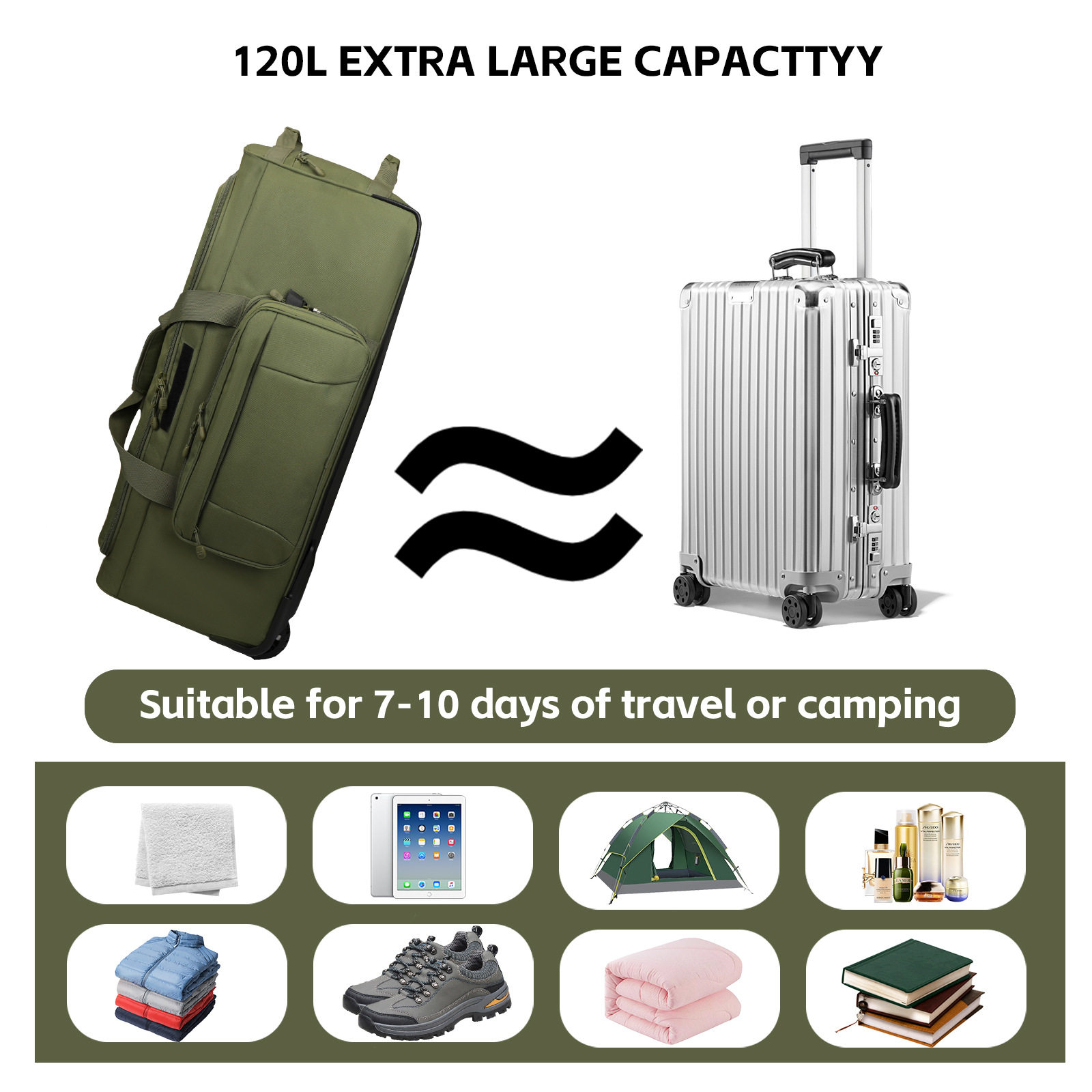 New Military Camouflage Large-Capacity Handbag, Sports Trolley Luggage Bag, Multi-Functional Outdoor Camping Bag