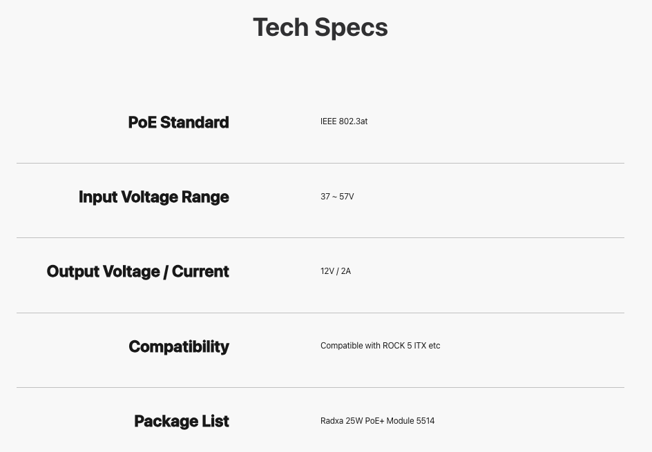 Radxa 25W Poe+ Module 5514 Ethernet Power Supply Module Supports 5t, 5Itx and Other Sbcs