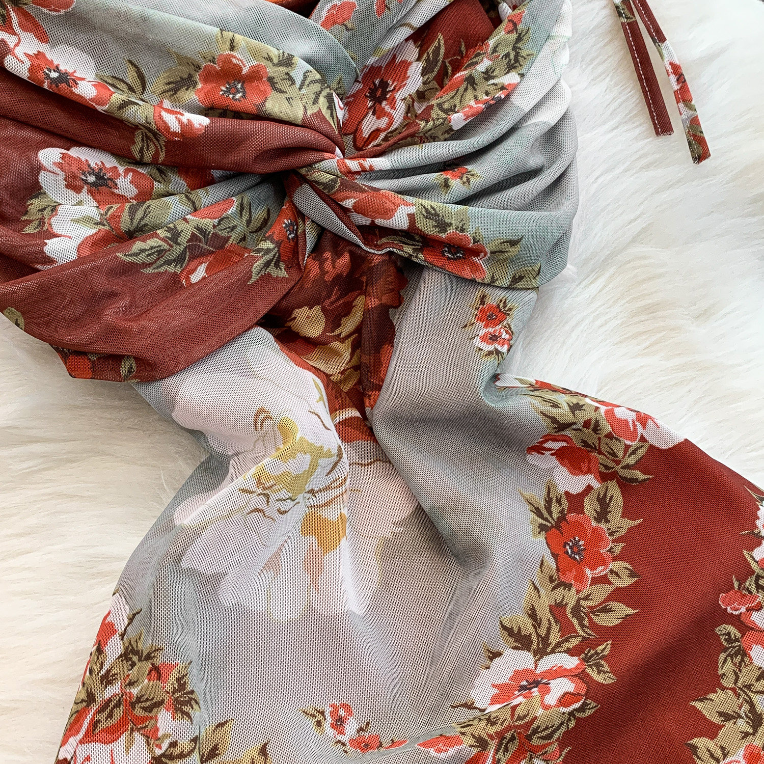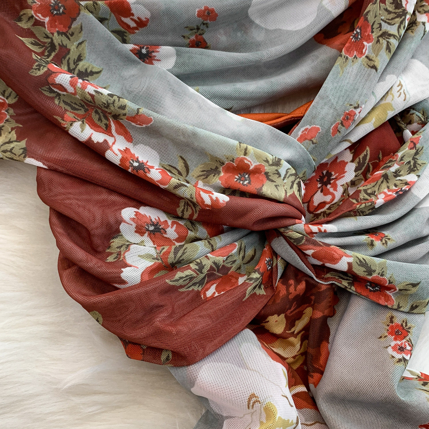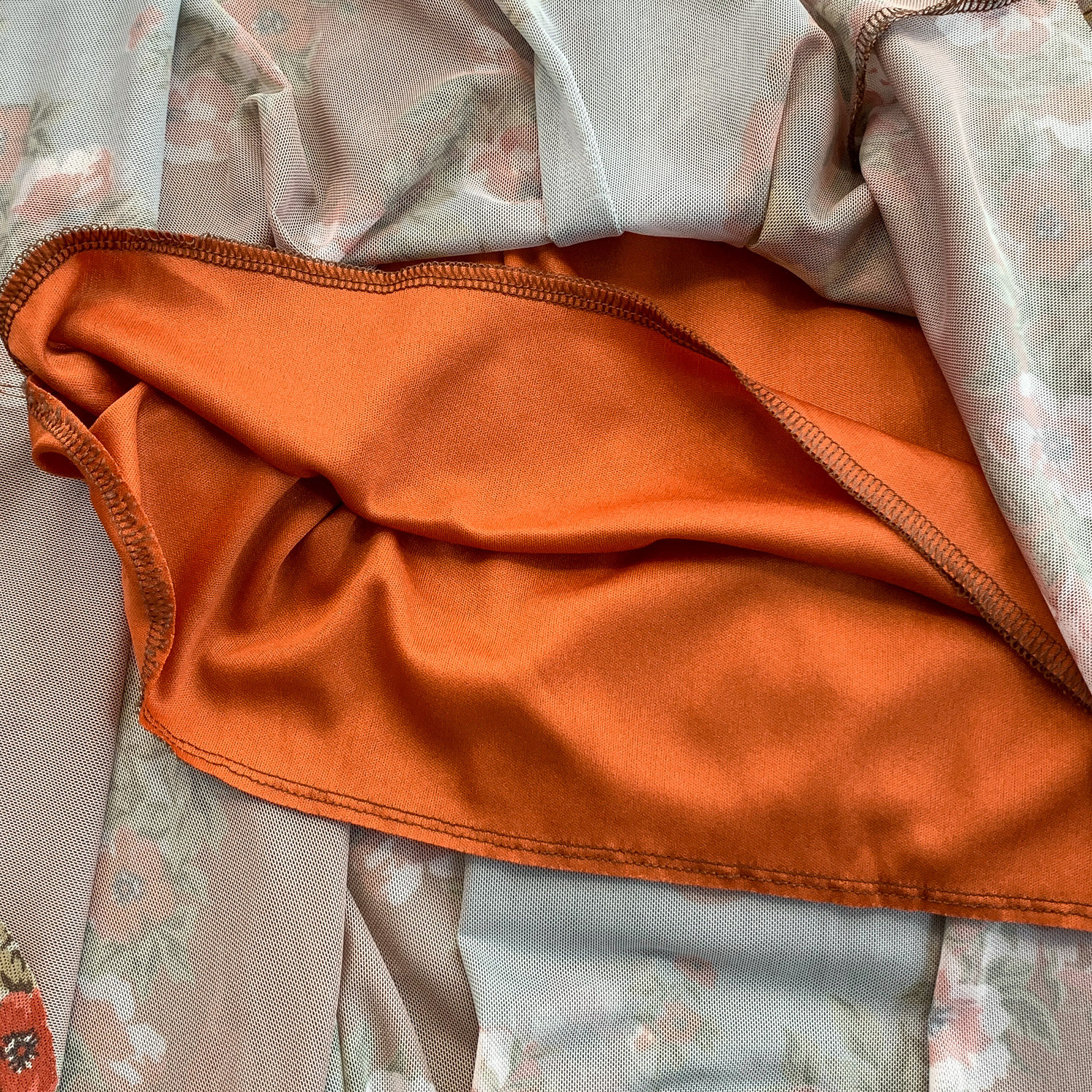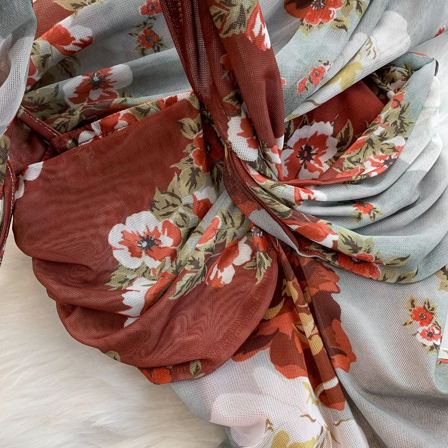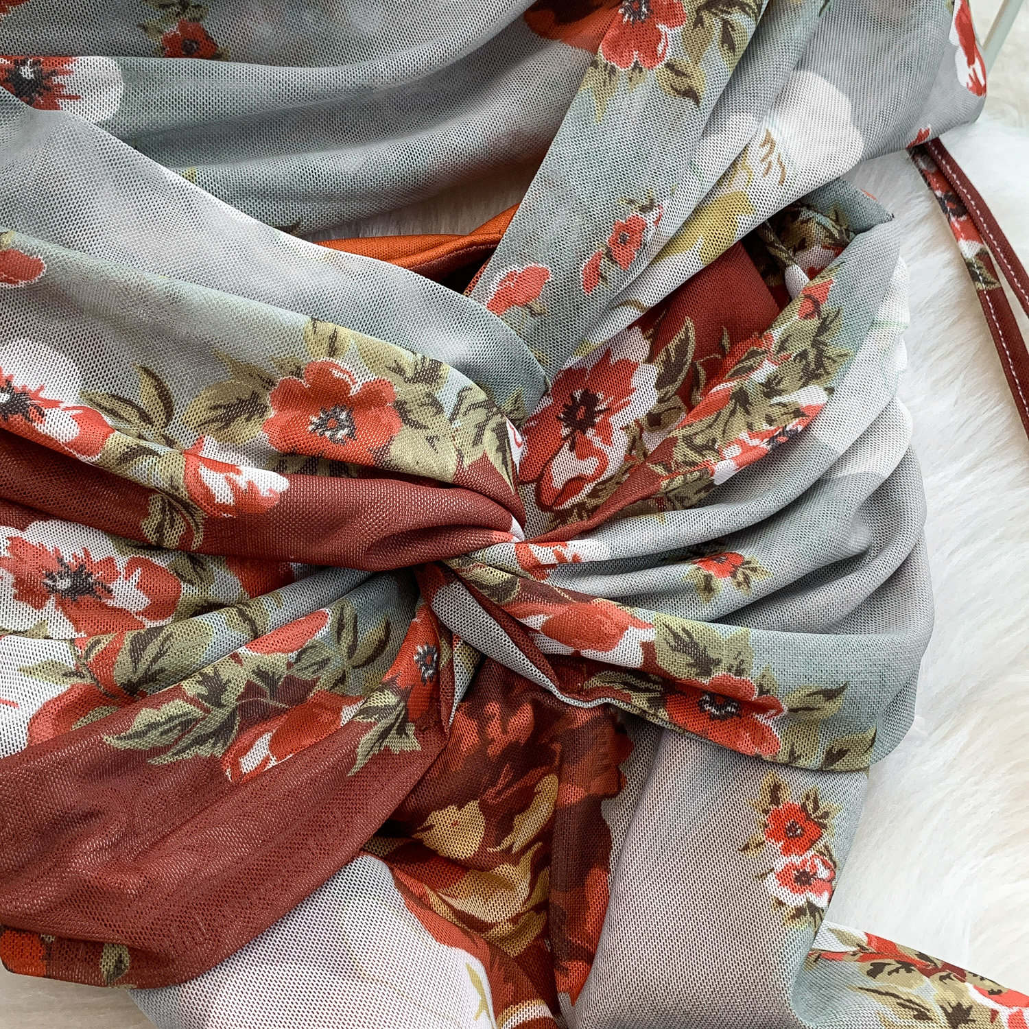 European and American Style Atmospheric Mesh Printed Twisted V-Neck Dress for Women, Summer Waist-Cinching Ruffled Elegant Long Dress