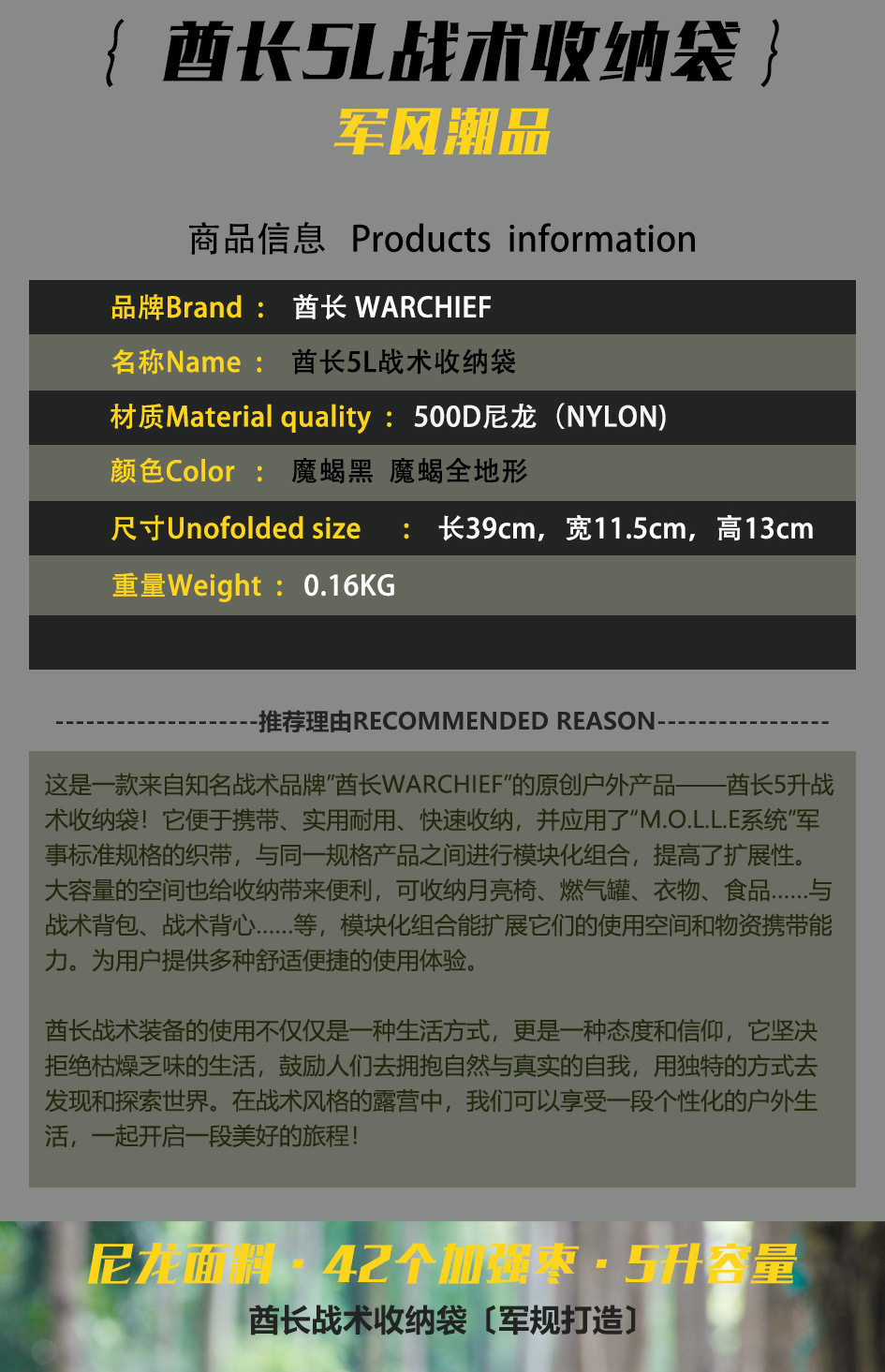 Chiefs Outdoor Sports Men's Crossbody Bag Tactical Camouflage Storage Bag Portable Functional Hanging Bag Camping Supplies Bag