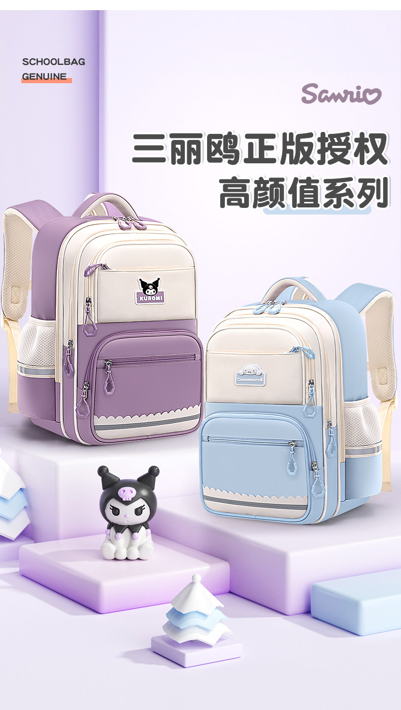 Sanrio Schoolbag for Primary School Girls in Grades 1-3-6, Large Capacity, Spine Protection, Weight Reduction, Lightweight Melody Backpack