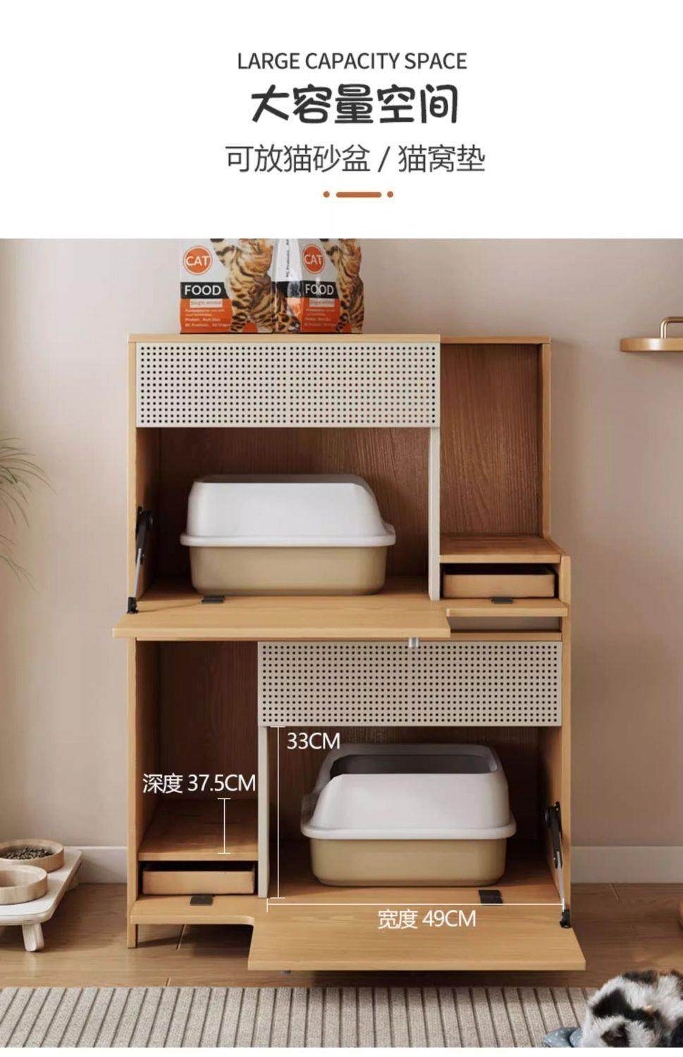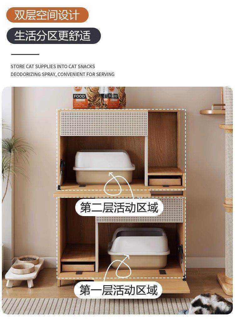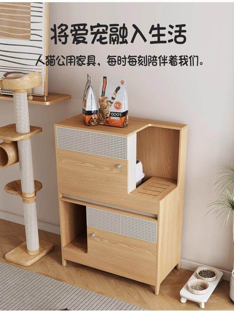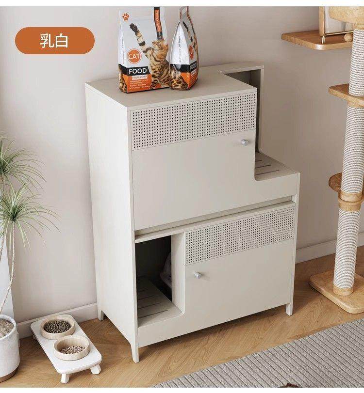 Double-Layer Cat Litter Box, Extra-Large Storage Rack, Semi-Enclosed Wooden Storage Cabinet for the Hallway