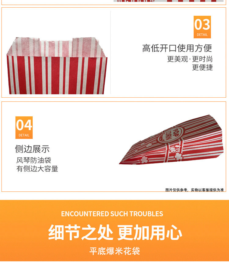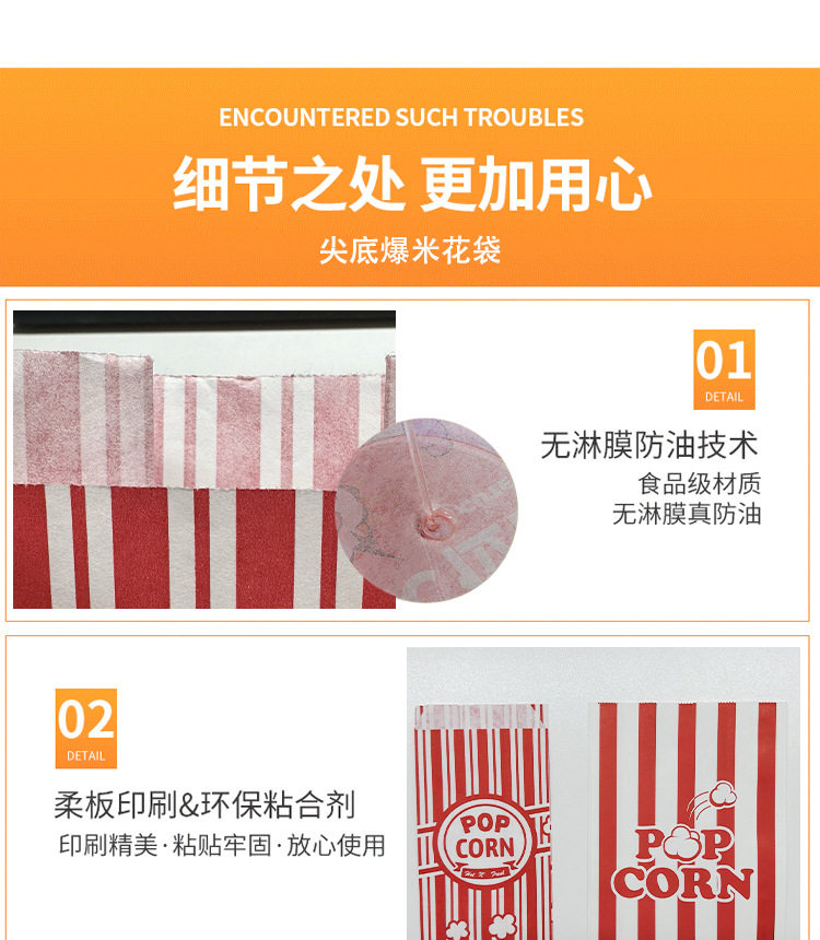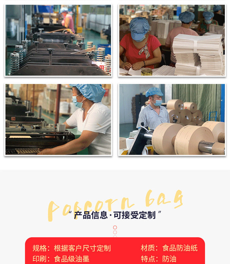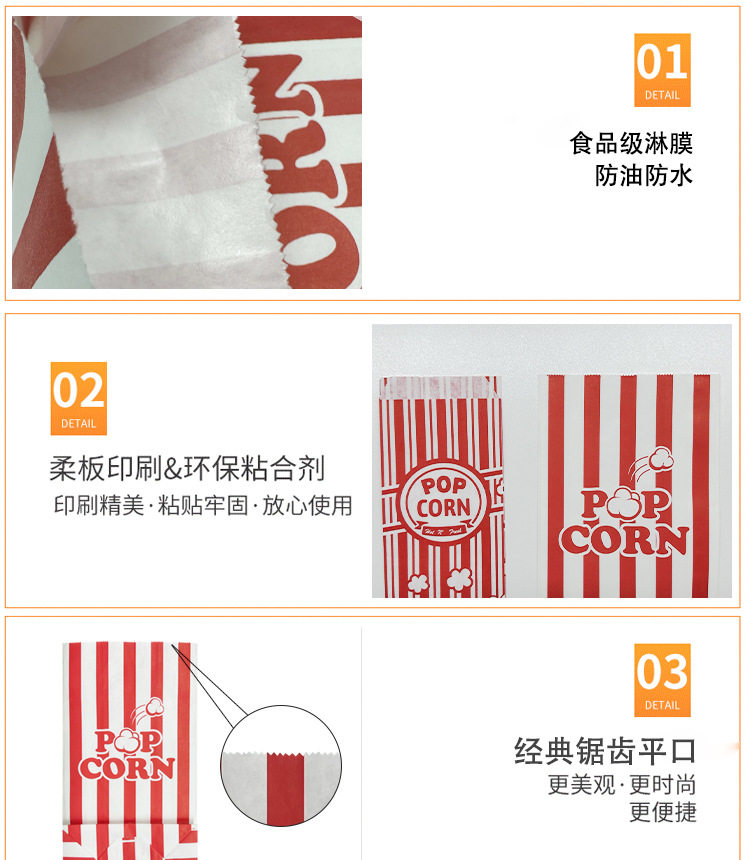 Ready-Made Popcorn Square-Bottom Oil-Proof Kraft Paper Disposable Food Packaging Bags Amazon Snack Paper Bags
