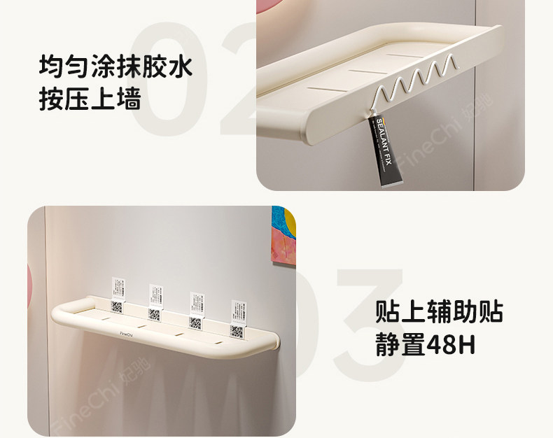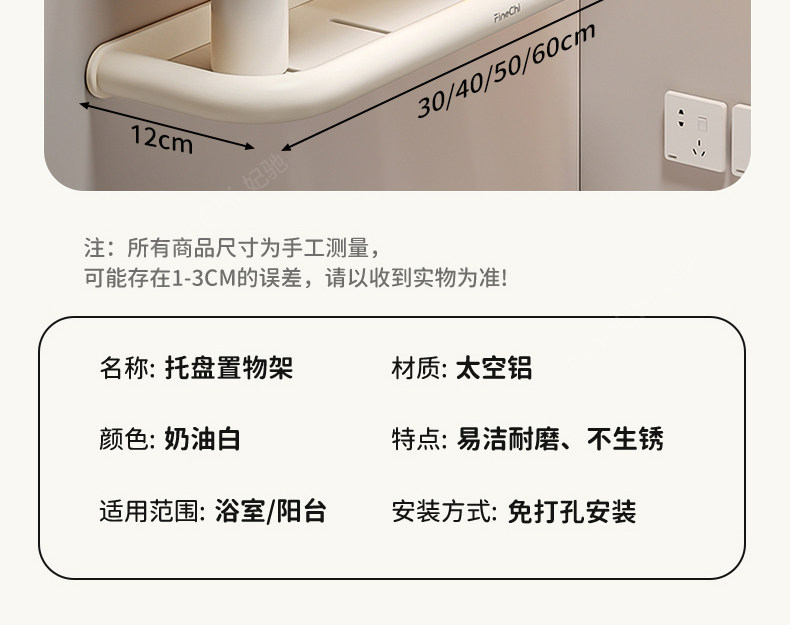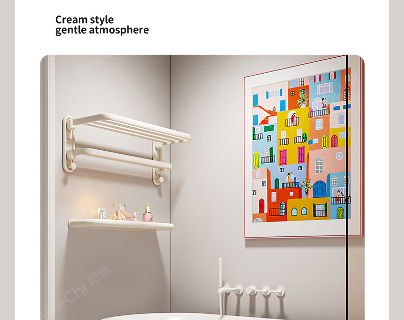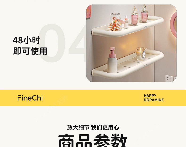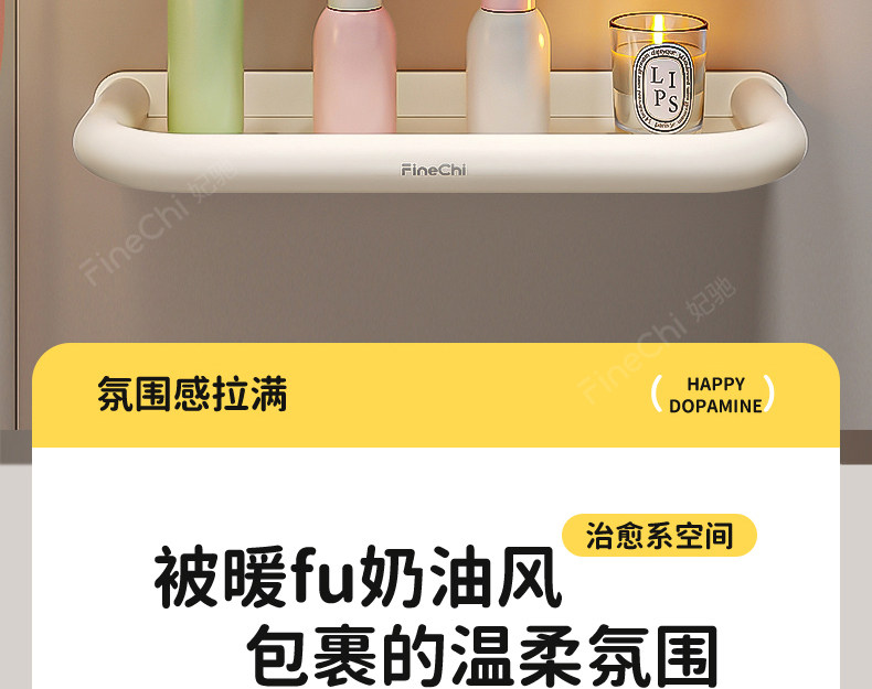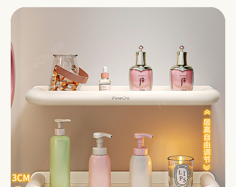 Finechi Cream Style Bathroom Storage Rack Without Punching Bathroom Toilet Washbasin Wall-Mounted Storage Rack