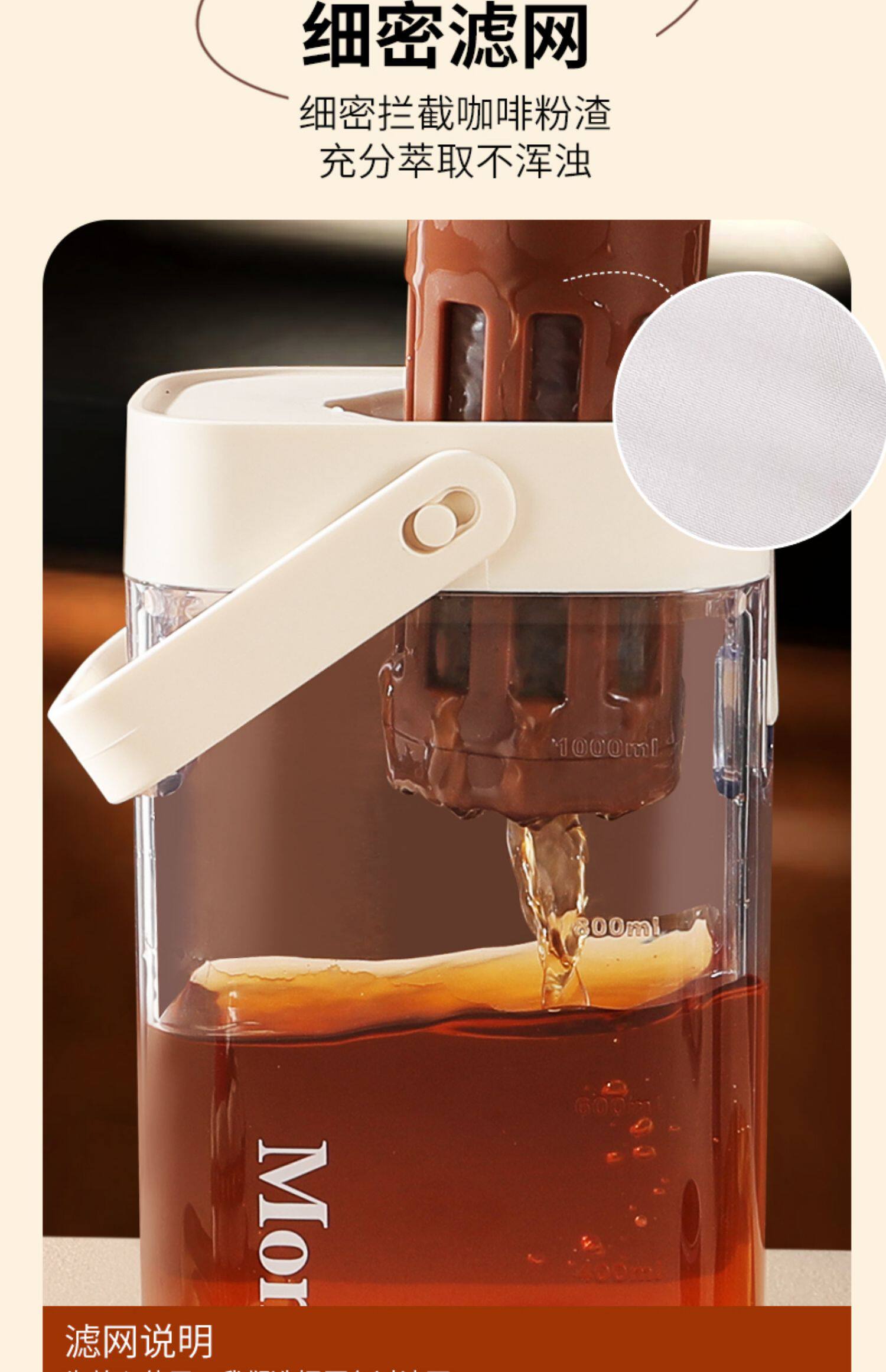 Color Classification Cold Brew Coffee Pot 1000ml[Upgraded, Extra-Long, Fine Mesh Filter with Graduated Scale]