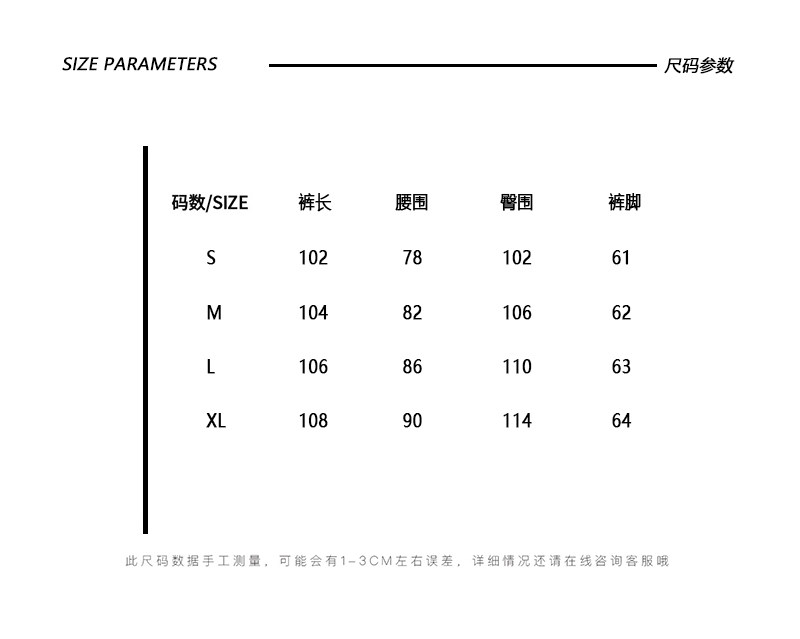 Outseam (cm) 99 cm 101.5 cm 104 cm 106.5 cm 109 cm