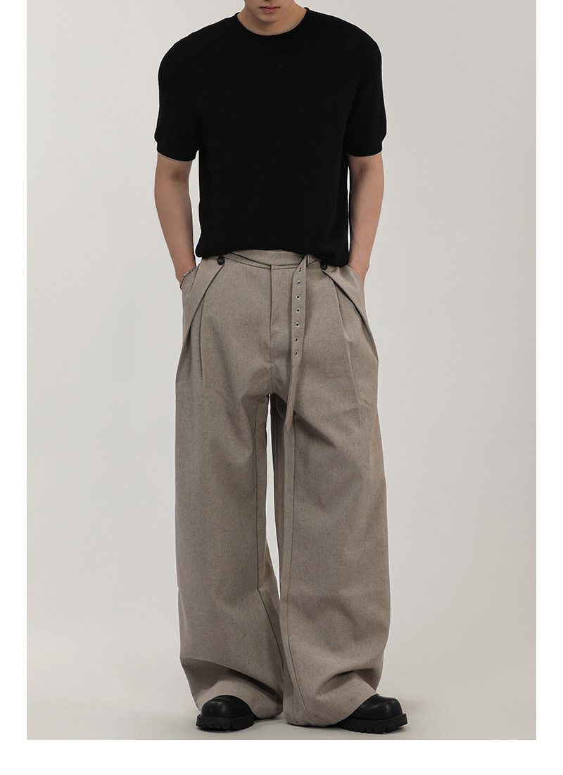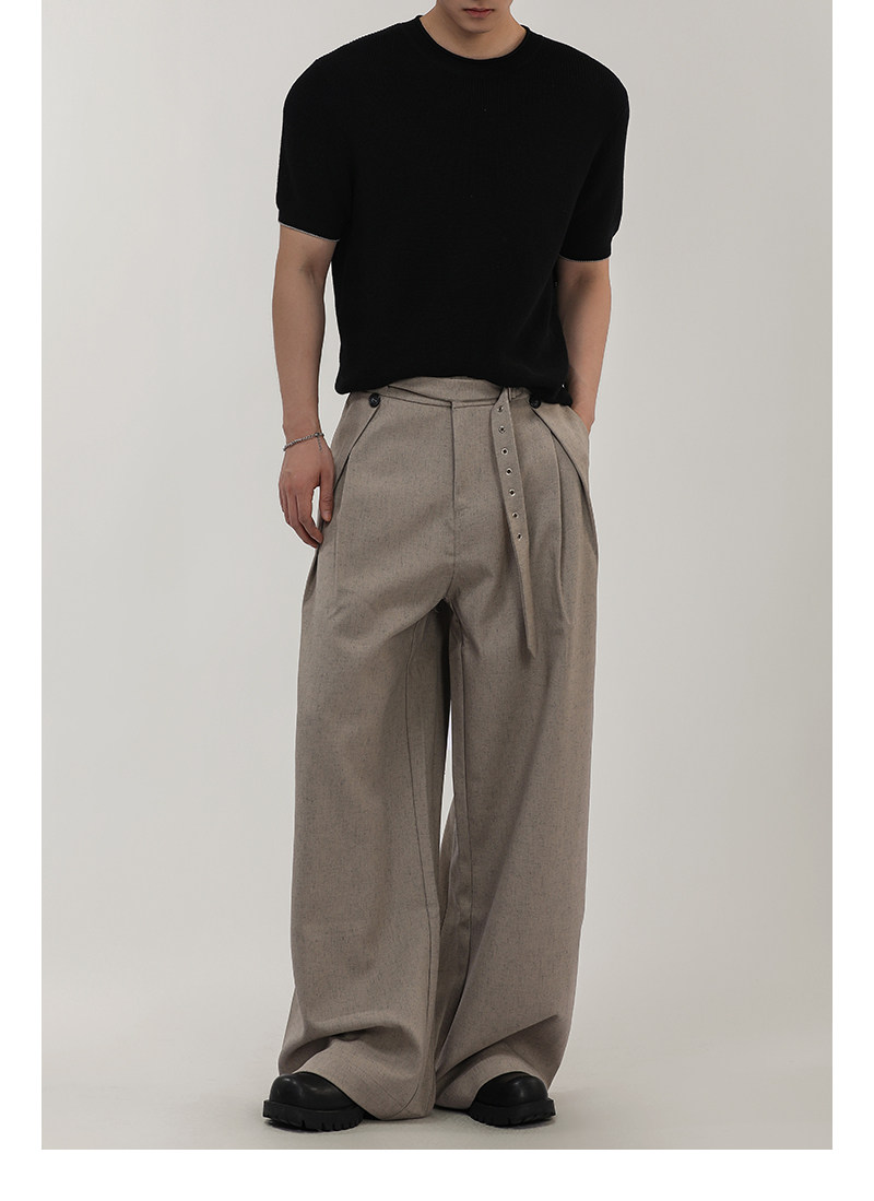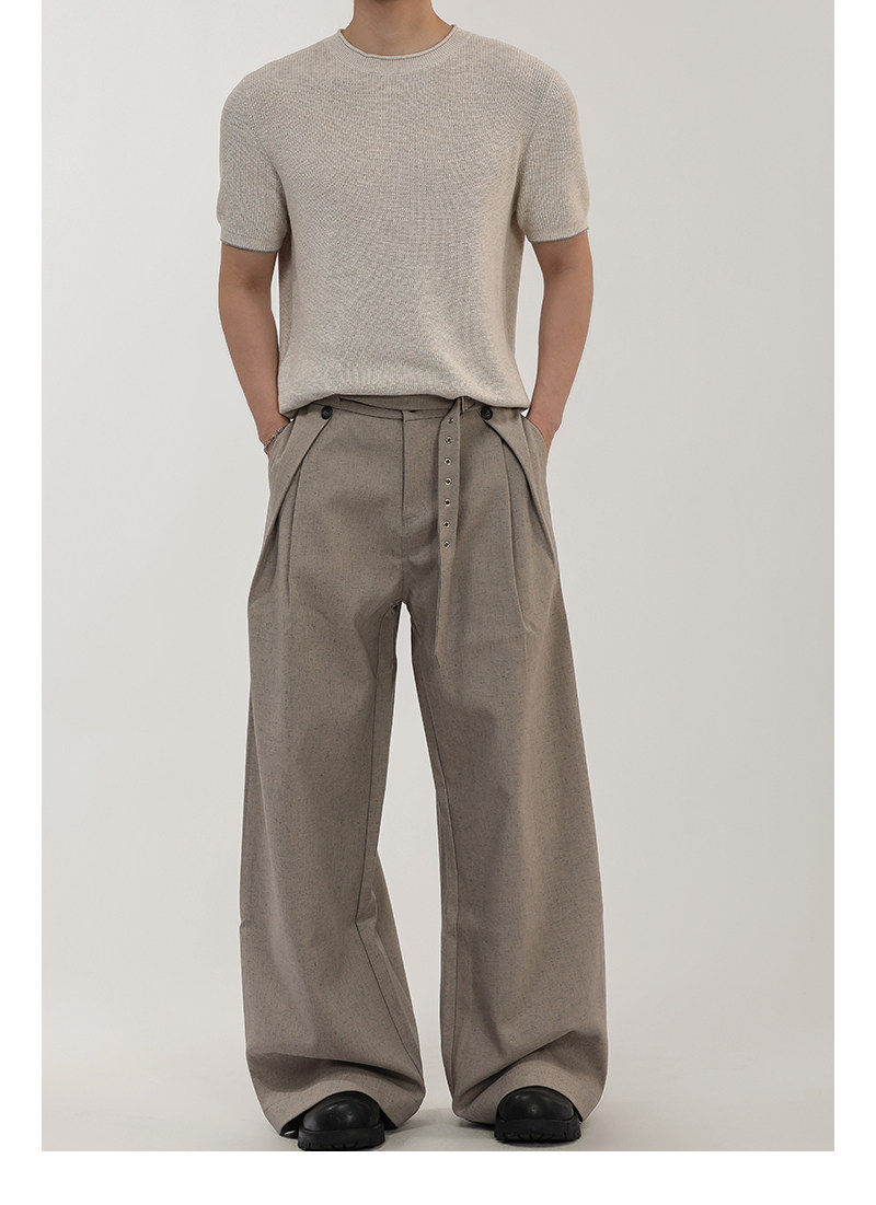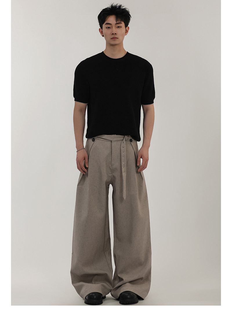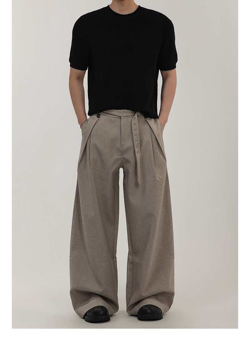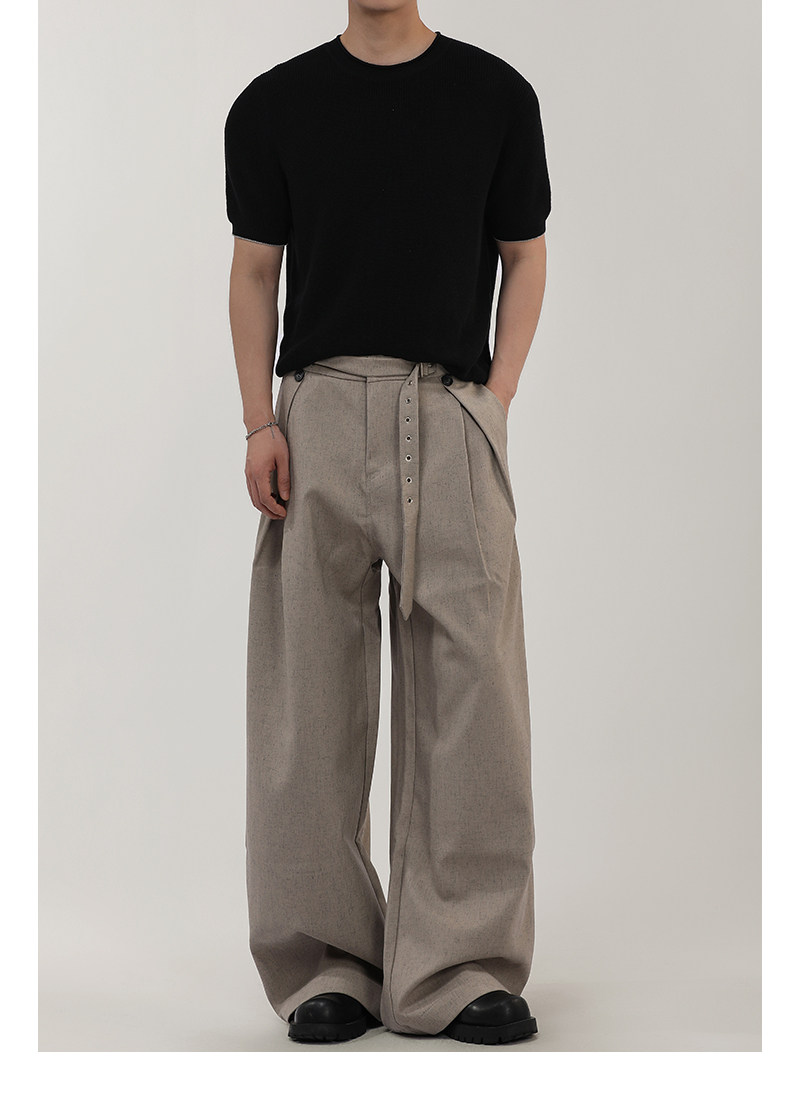 A Carton American-Style Linen-Textured Loose Casual Trousers for Men and Women, Tr Blend, Commuter Double-Pleat Design Long Pants