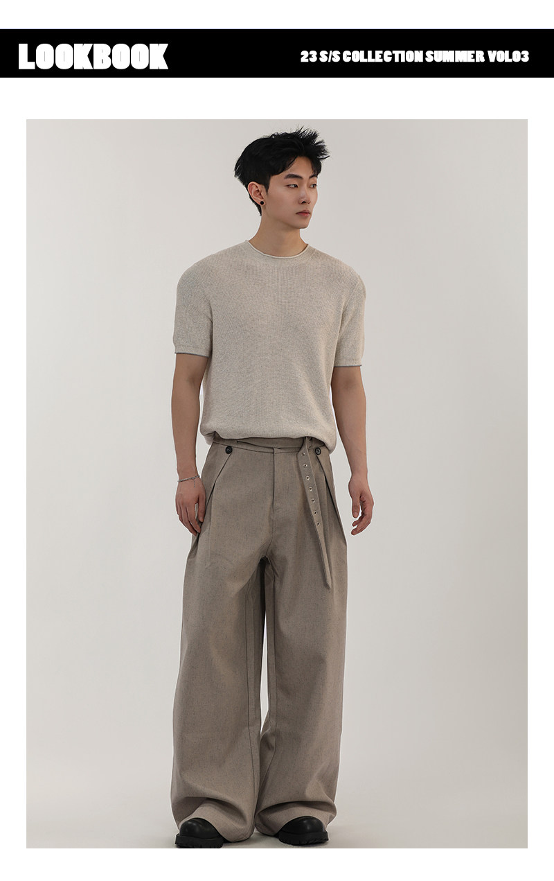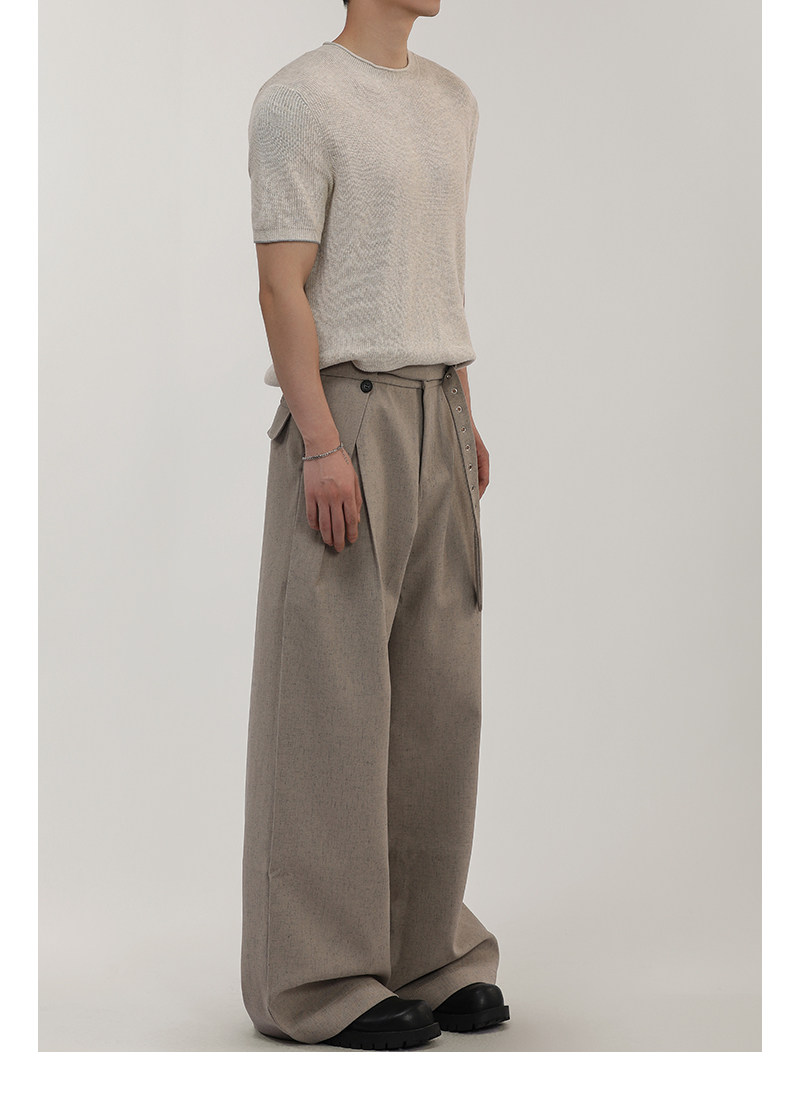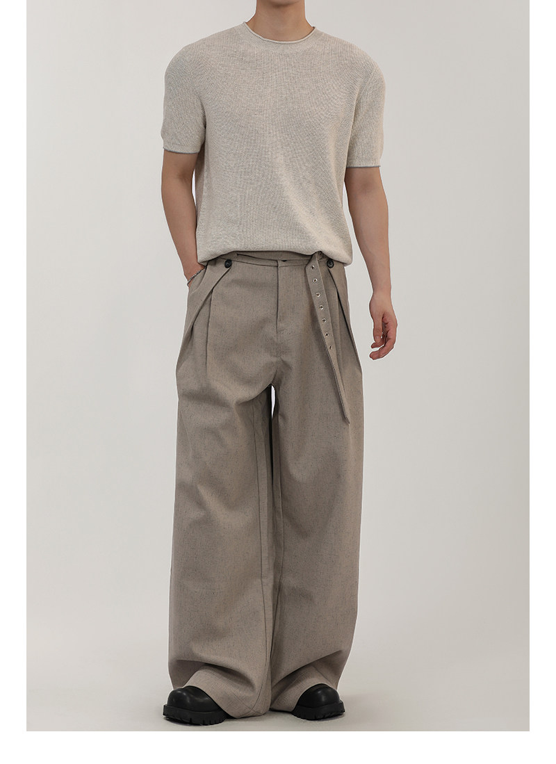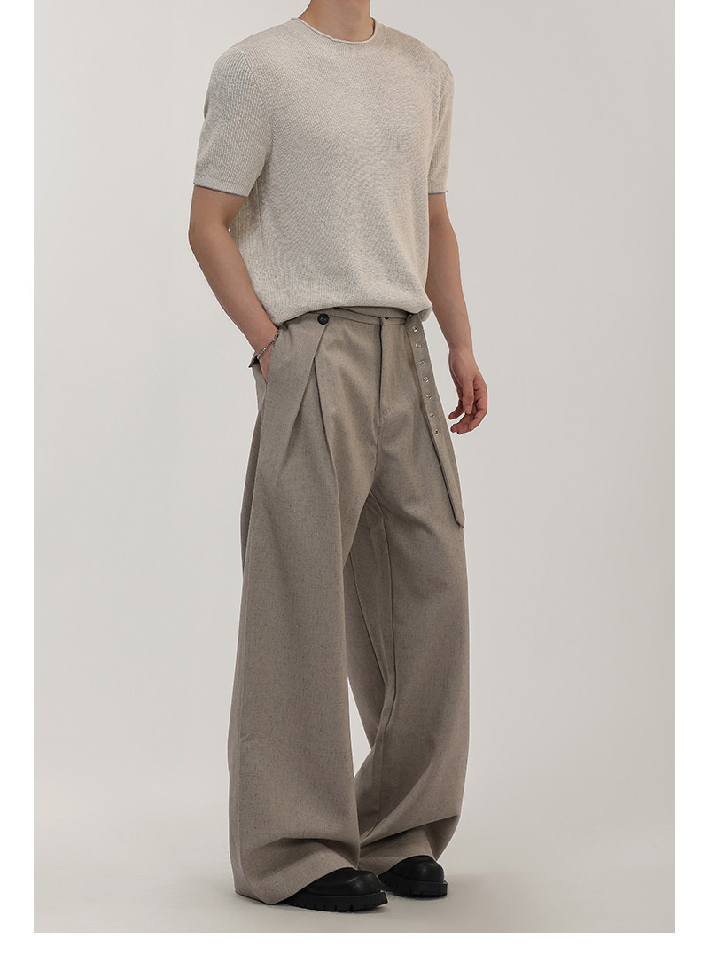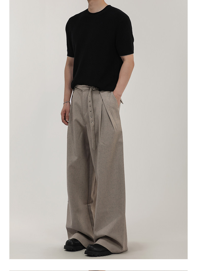 A Carton American-Style Linen-Textured Loose Casual Trousers for Men and Women, Tr Blend, Commuter Double-Pleat Design Long Pants