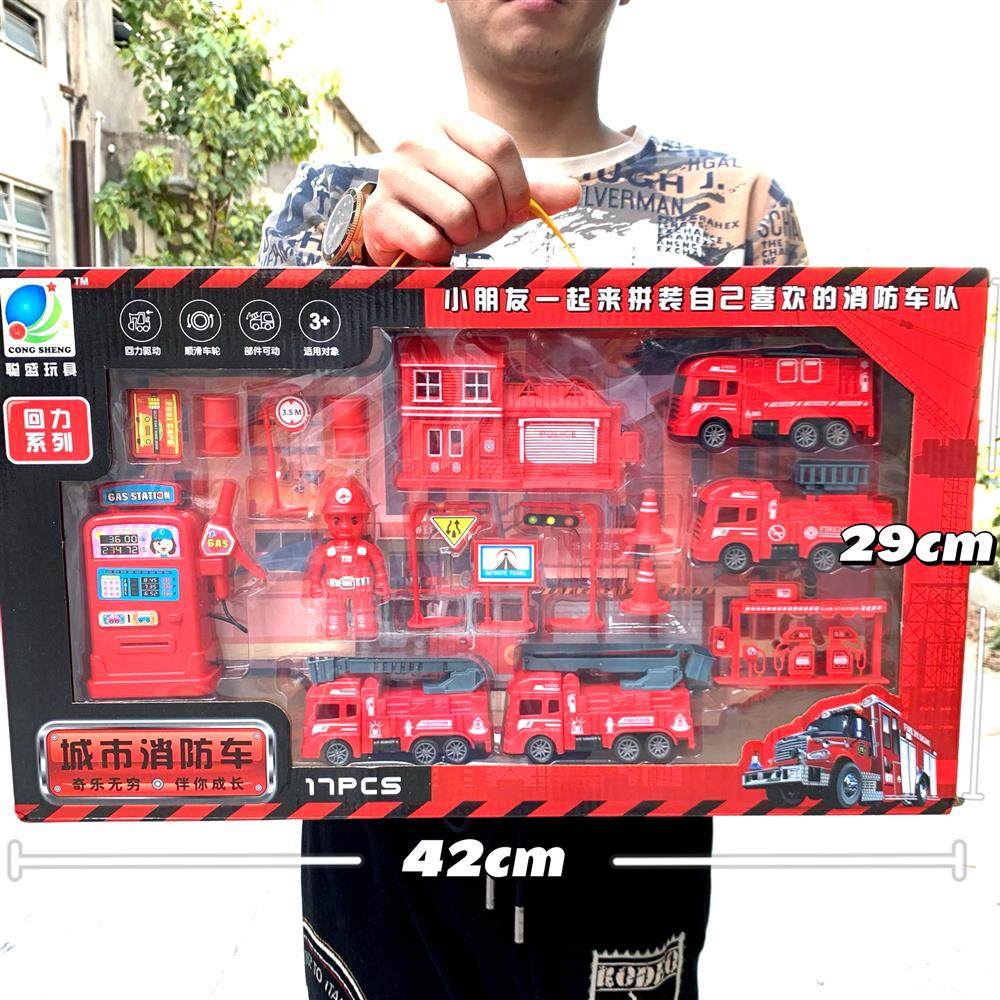 Pull-Back Inertia Engineering Vehicle Gift Box Set Excavator Fire Truck Set Boys' Car Toys Street Stall