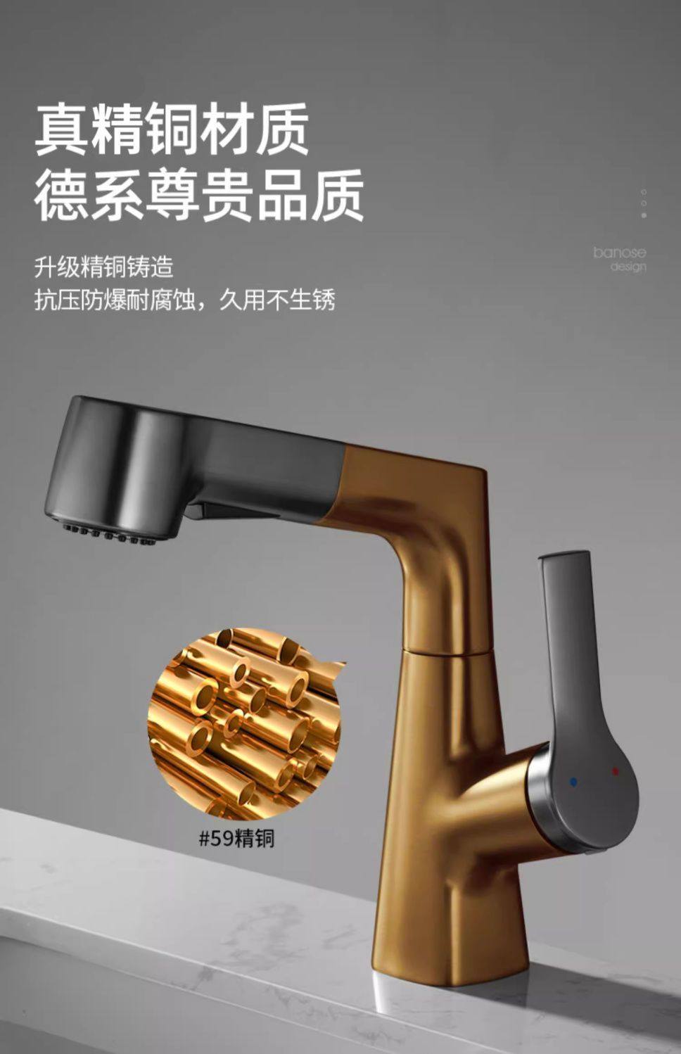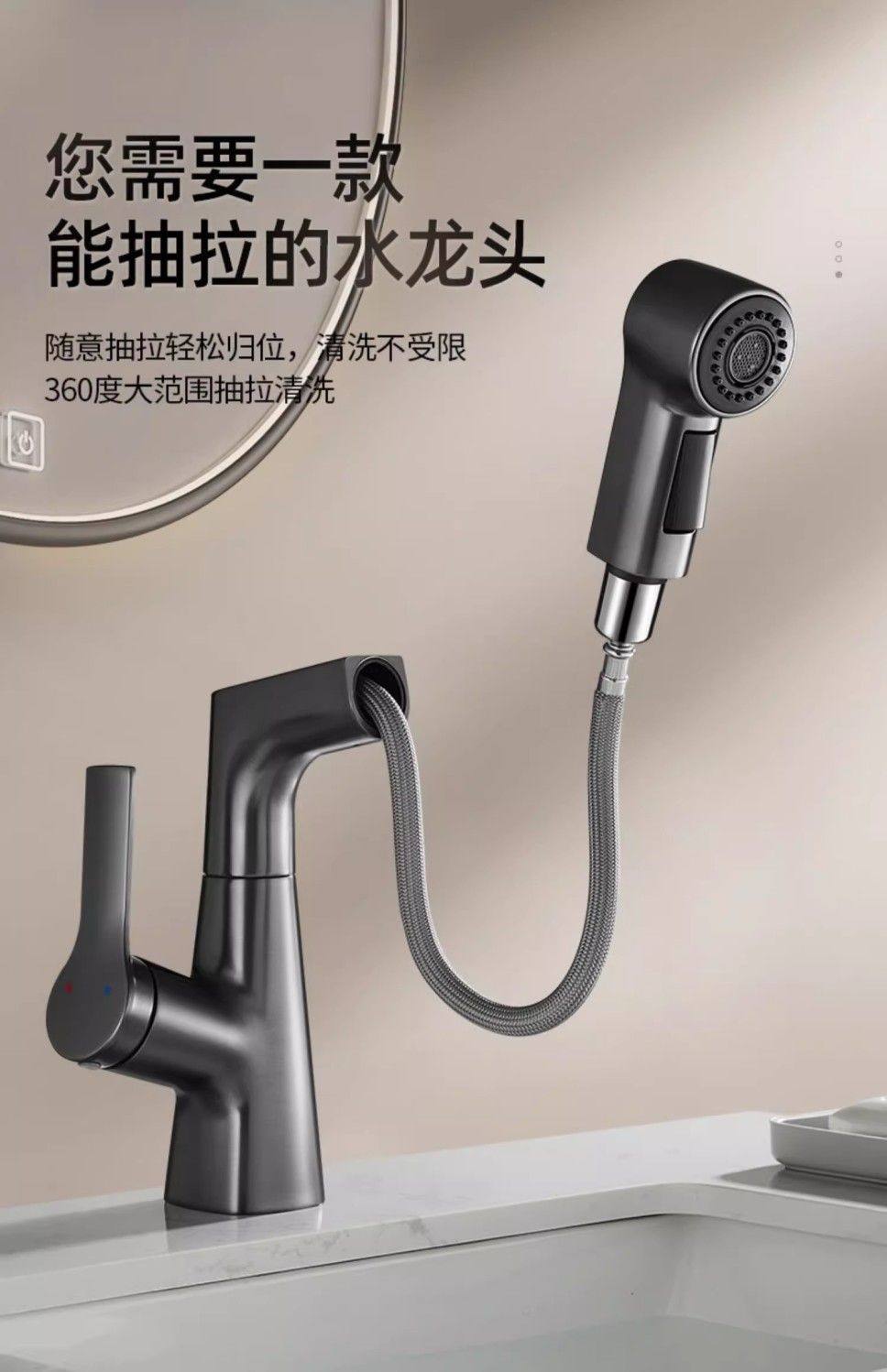 Bathroom Washbasin Hot and Cold Faucet, Multifunctional Adjustable Pull-Out Pressurized Splash-Proof Toilet Faucet