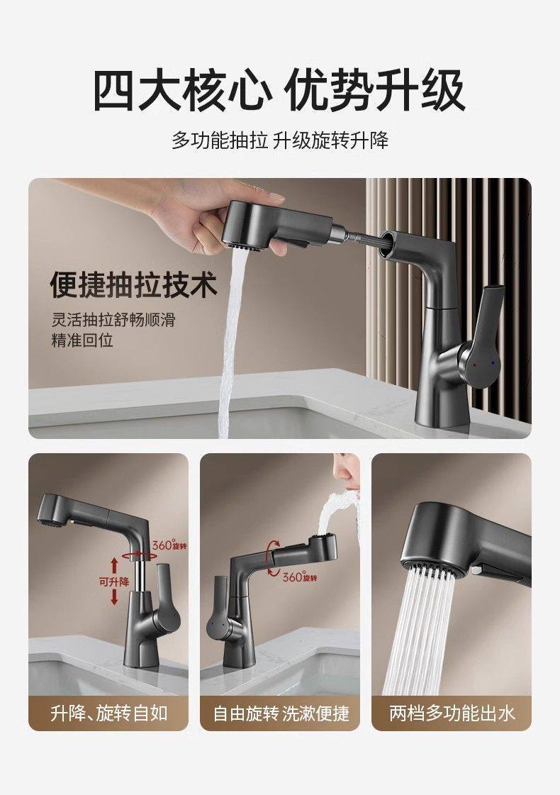 Color Classification 【Gunmetal Gray】Hot & Cold Multifunctional Two-Setting Basin Faucet
