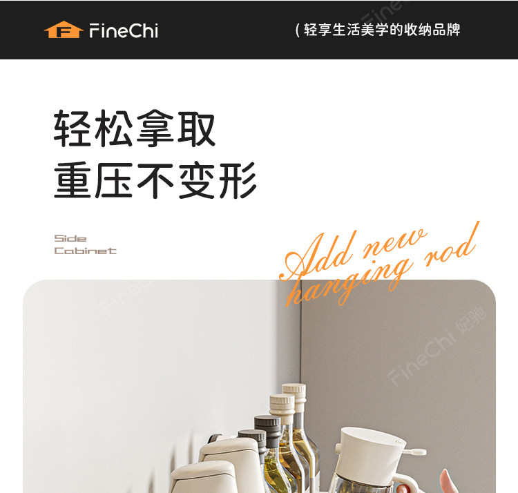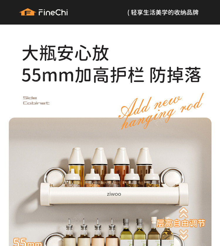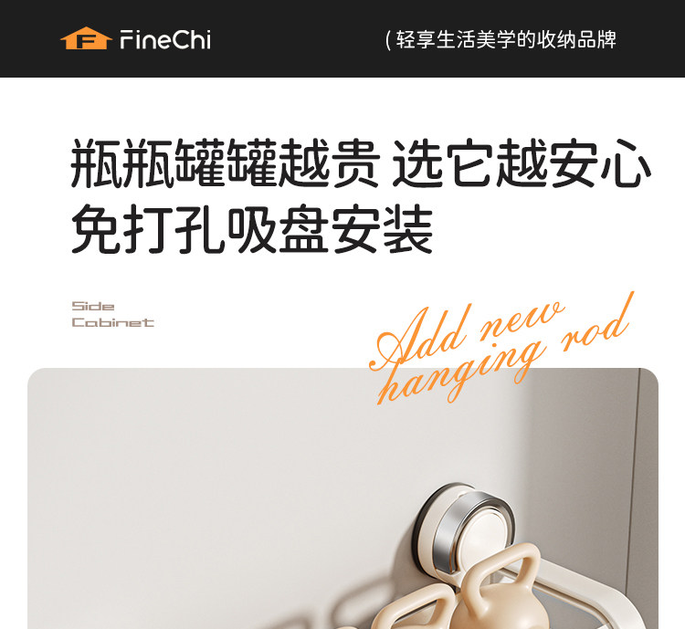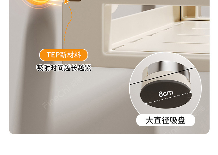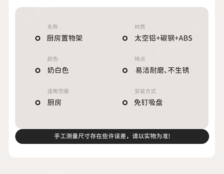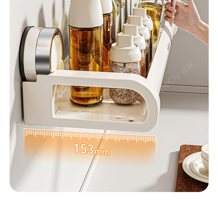Finechi Kitchen Suction Cup Storage Rack Spice Rack Wall-Mounted Multi-Functional Condiment Storage Shelf Cream Style