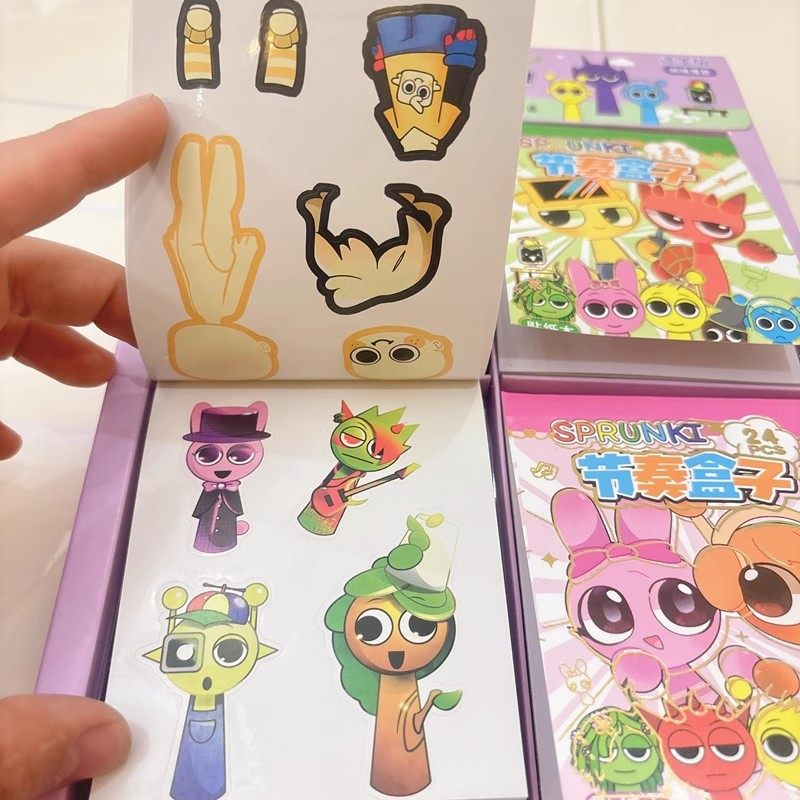 New Rhythm Box Sticker Notebook for Students, Cute Material Book for Girls, Sticker Pack, Emoji Book