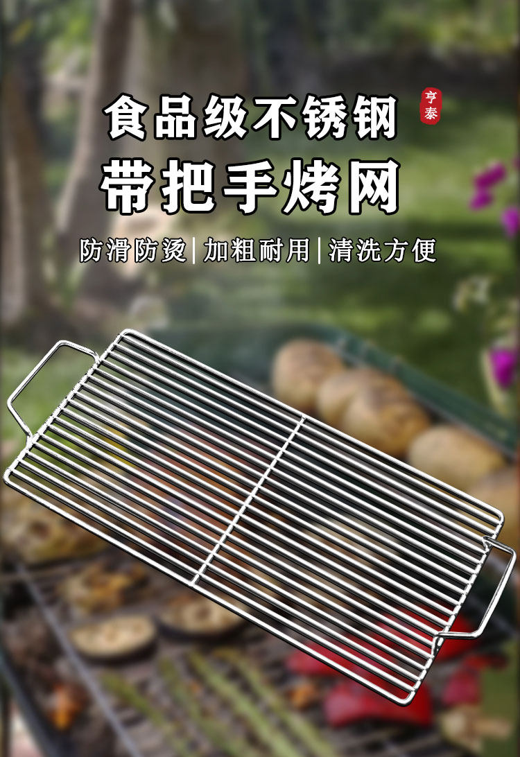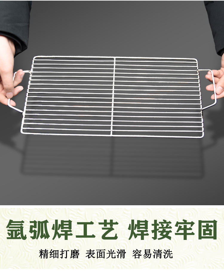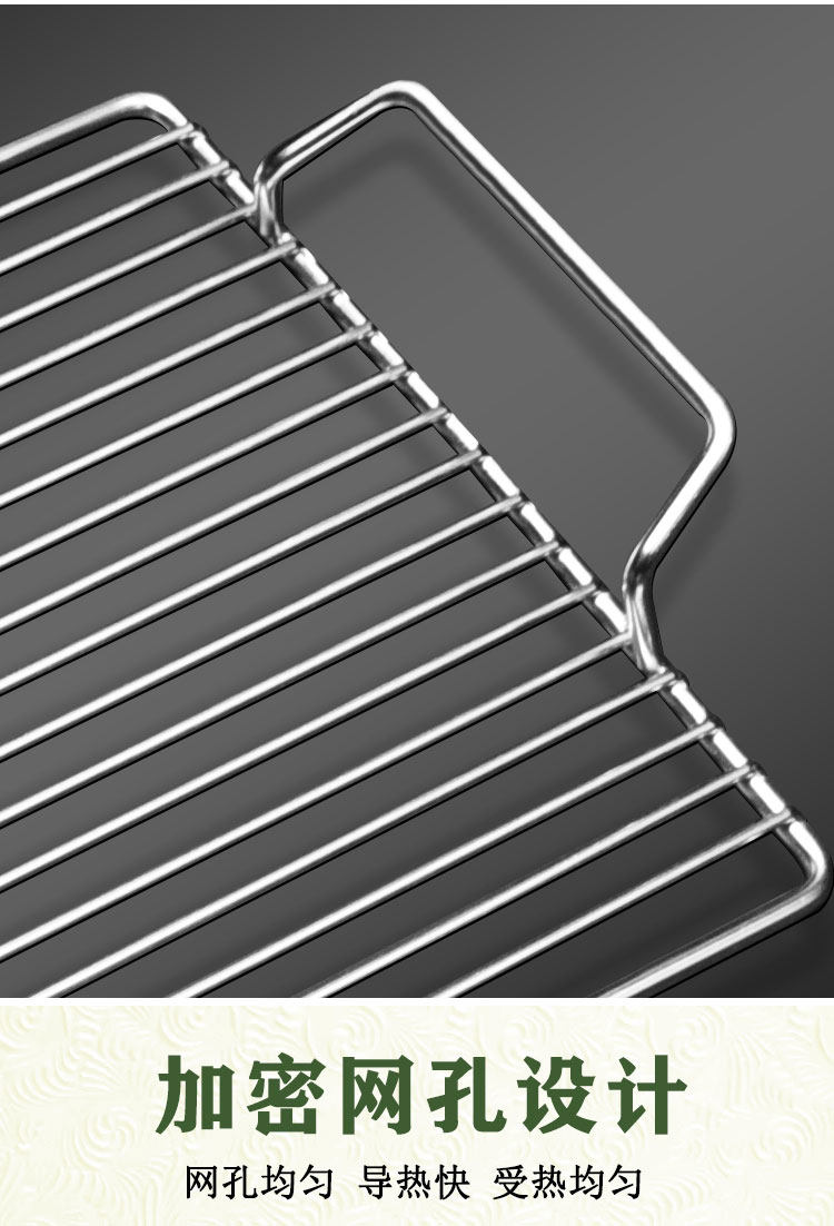 Stainless steel double handle rectangular barbecue net rack barbecue grate cake cooling net thick outdoor strip net