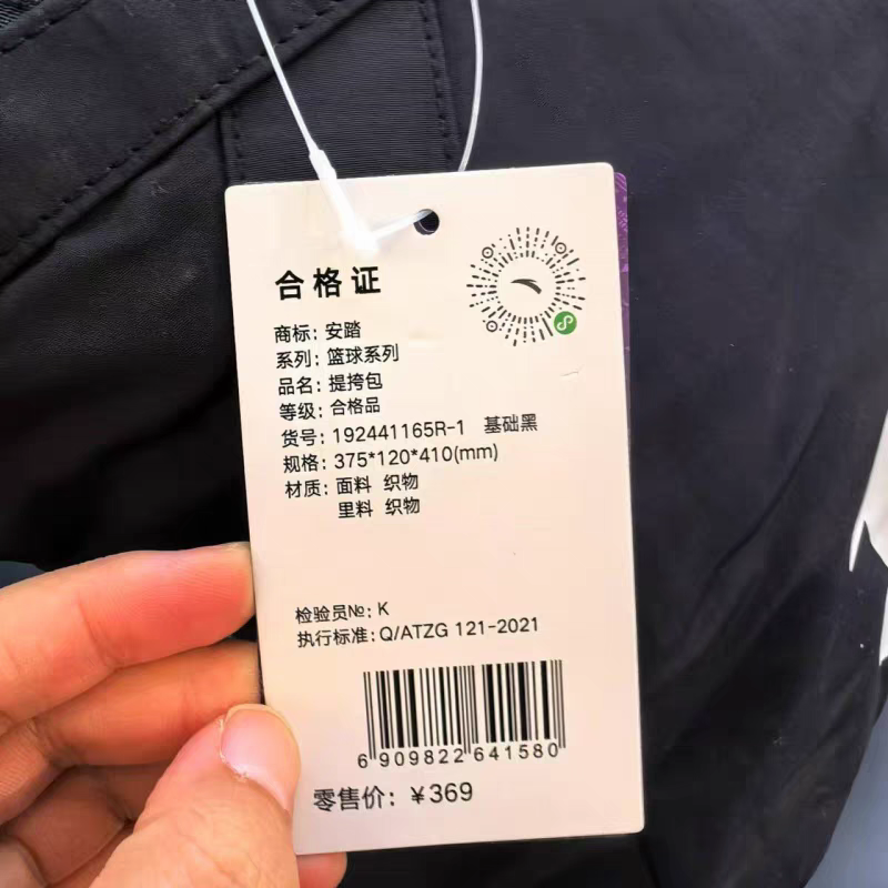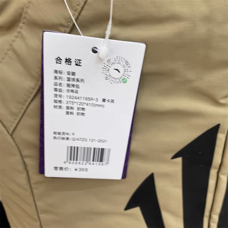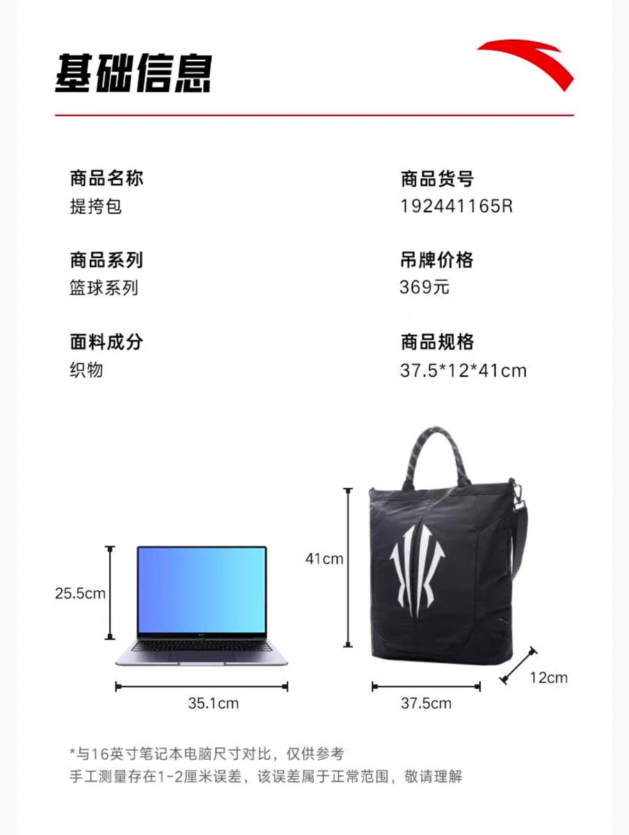 Anta Irving Tote Bag New Large Capacity Storage Travel Bag Handbag Single Shoulder Commuter Bag 192441165R