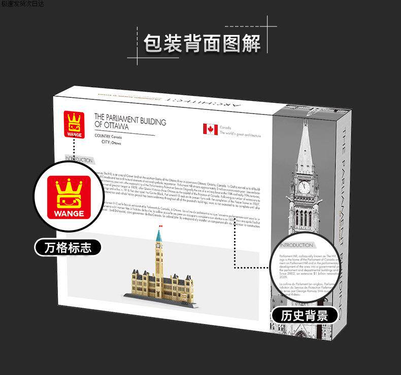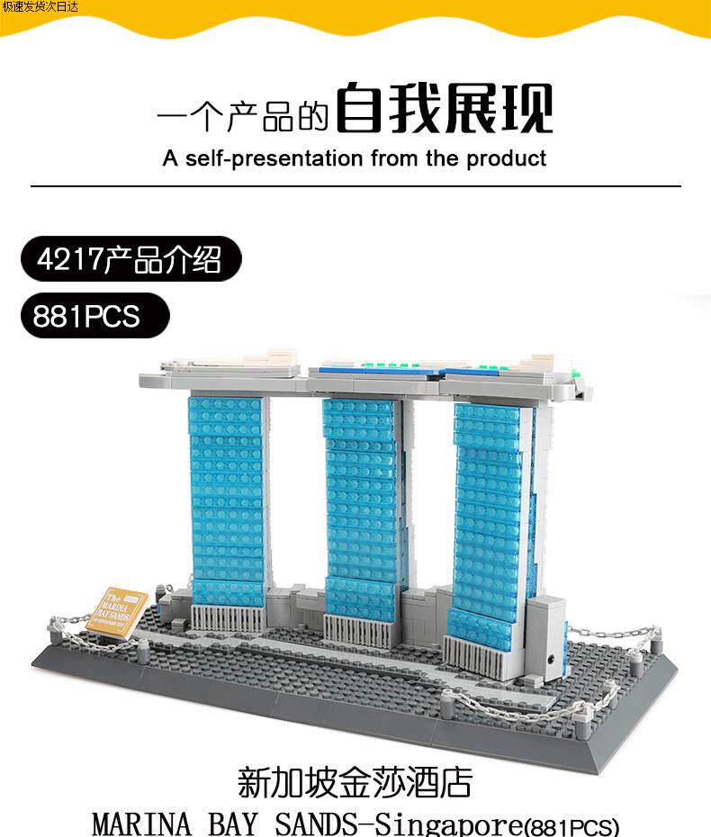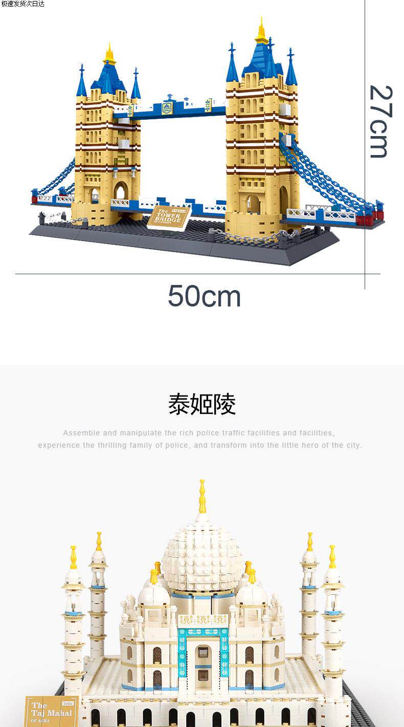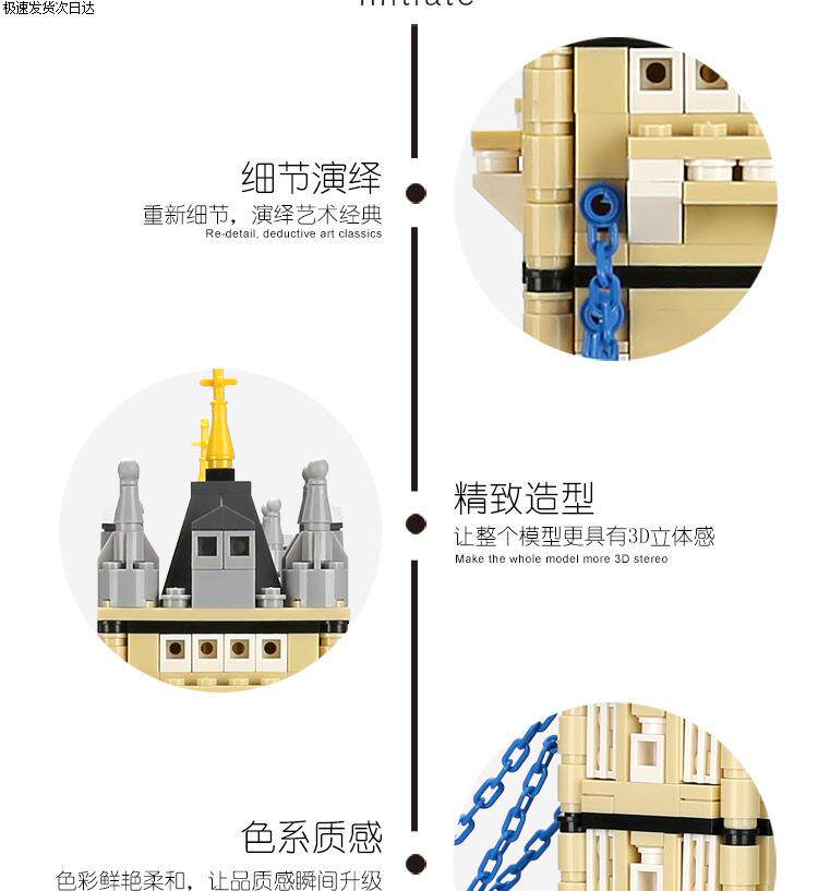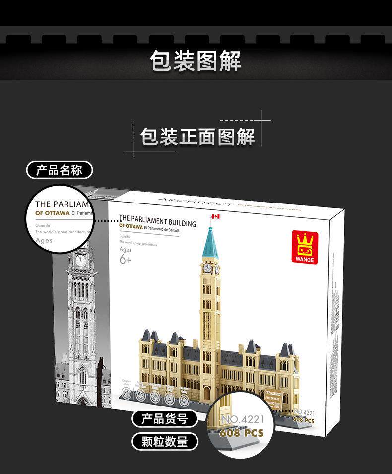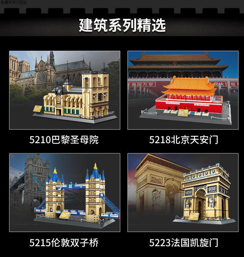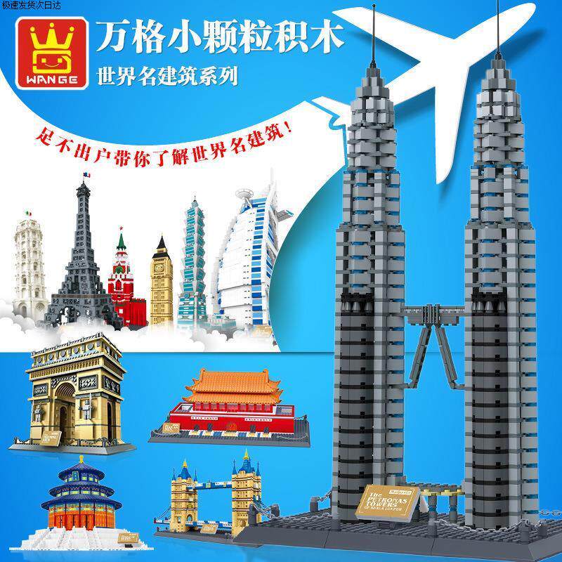 Color Classification Wange 4210 Pyramid(7011),Wange 4211 Big Ben (7012),Wange 4212 Roman Fountain of Wishes (7014),Wange 4213 Louvre(7017),Wange 4214 (New Version) White House,Wange 4215 Toronto Tv Tower, Toronto, Canada,Wange 4216 (New Version) Lincoln Memorial in Washington, Usa,Wange 4217 Marina Bay Sands Hotel, Singapore,Wange 4218 Singapore Merlion Statue,Wange 4219 Tower Bridge, London,Wange 4220 New York Iron Building,Wange 4221 Canadian Parliament,Wange 4222 Burj Khalifa, Dubai,Wange 4223 Tsinghua University, Beijing, China,Wange 4226 Mecca Masjid Al-Haram Kaaba,Wange 4227,Wange 4228 Al-Madina Mosque,Wange 5210 Notre Dame De Paris,Wange 5211 Agra Taj Mahal (New Version),Wange 5212 Empire State Building, New York,Wange 5213 Gemini Tower (8011),Wange 5214 Pizza Leaning Tower (8012),Wange 5215 London Bridge (8013),Wange 5216 Big Ben (8014),Wange 5217 Eiffel Tower (8015),Wange 5218 Tiananmen (New Packaging),Wange 5219 Kremlin (8017),Wange 5220 Burj Al Arab Hotel, Dubai (8018),Wange 5221 Taipei 101 (8019),Wange 5222 Chinese Temple of Heaven (New Version 1051 Particles),Wange 5223 Arc De Triomphe (8021),Wange 5225 Roman Colosseum (New Version),Wange 5226 Tokyo Imperial Hotel,Wange 5227 Statue of Liberty in the United States,Wange 5228 Willis Tower, Chicago, Usa,Wange 5229 Girl Tower in Istanbul, Turkey,Wange 5230 Aiwanting, Changsha, Hunan, China,Wange 5231 Statue of Jesus in Rio De Janeiro, Brazil,Wange 5232 Fallingwater, Pennsylvania, Usa,Wange 5233 House of Van Everth, Illinois, Usa,Wange 5234 Chinatown, Washington, Usa,Wange 5235 United States Capitol Building, Washington,Wange 5236 Drunken Man Pavilion - Famous Pavilion Architecture,Wange 5237 Savoy Villa,Wange 5238 Seattle Space Needle,Wange 5239 Forbidden City Corner Tower, Beijing, China,Wange 5240 Chongryeong Gate, Seoul,Wange 5241 Nanjing Confucius Temple,Wange 5242 Guggenheim Museum,Wange 5243 Dome Mosque,Wange 5244 Winter Palace, St. Petersburg, Russia,Wange 5245 Chongqing Liziba Station,Wange 5246 Chicago Robin Villa,Wange 5247 Xi'An Wild Goose Pagoda,Wange 5248 Rockefeller Center, Manhattan, New York,Wange 5249 Trafalgar Square, London,Wange 5250 John Hancock Center, Chicago, Usa,Wange 5251 Blue Mosque in Istanbul, Turkey,Wange 5252 Peru Cusco Machu Picchu,Wange 6210 Golden Gate Bridge (8023),Wange 6211 German Brandenburg Gate,Wange 6212 Japanese Kiyomizu-Dera Enno Gate,Wange 6213 St. Basil's Cathedral,Wange 6214 Yellow Crane Tower,Wange 6215 London Eye, London, Uk,Wange 6216 Badaling Great Wall,Wange 6217 Potala Palace,Wange 6219 United Nations Building,Wange 6220 Saudi Arabia Mecca Mosque,Wange 6221 Forbidden City Hall of Supreme Harmony,Wange 6222 Jiayuguan, Gansu, China,Wange 6223 Wuhan Yangtze River Bridge, China,Wange 6224 White, London, Uk 6223 Kimball Palace,Wange 6225 Mexican Kukulkan Mayan Pyramid,Wange 6226 Neuschwanzen Castle, Bavaria, Germany,Wange 6227 Songshan Shaolin Temple,Wange 6228 Xi'An Bell Tower,Wange 6229 Cattail Tower,Wange 6230 Santorini, Greece,Wange 6231 Shanghai Bund Customs Building,Wange 6232 Qinhuai River Painting Boat,Wange 6233 Mont Saint-Michel, Normandy, Calvados, France,Wange 6234 Yichuan County, Henan Province, China,Wange 6235 Suzhou Hanshan Temple (Puming Pagoda),Wange 6236,Wange 7210 China Pavilion at the Shanghai World Expo,Wange 7211 Yueyang Tower, Yueyang City, Hunan Province, China,Wange 7212 Nanchang Tengwang Pavilion,Wange 7213 Hongyadong, Chongqing,Wange 7214 Drum Tower, Xi'An, Shaanxi, China,Wange 7215 New Chamartin Stadium, Madrid, Spain,Wange 5224 Oriental Pearl Tower