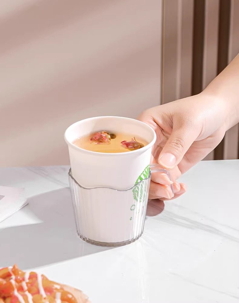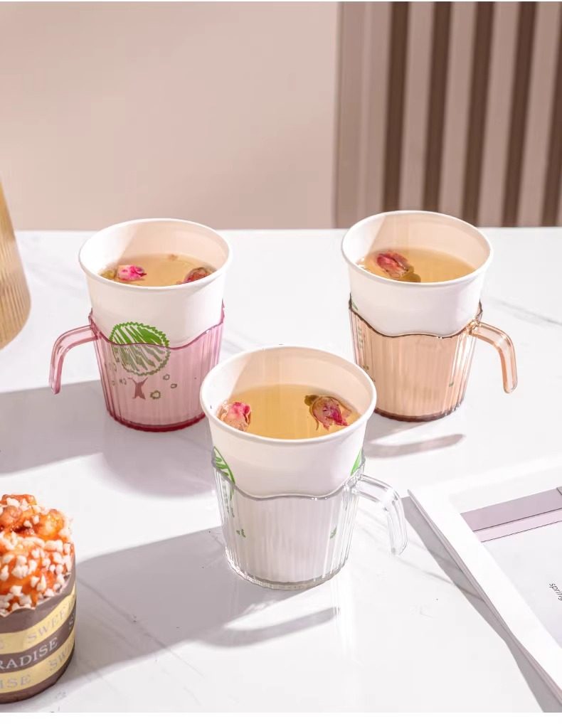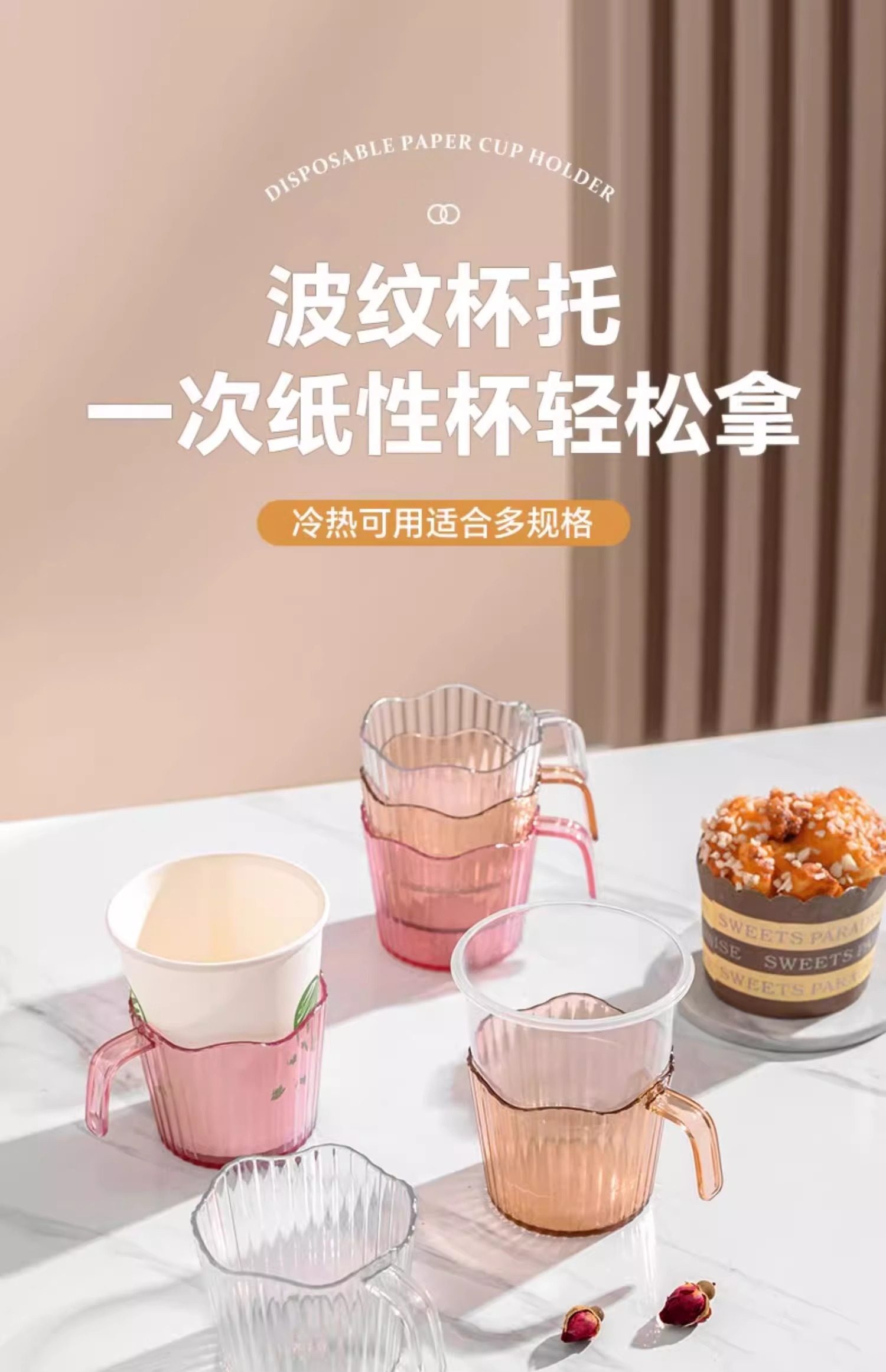 Thickened Disposable Paper Cup Holder with Hard Plastic Tea Cup Holder, Insulated Cup Holder with Stripes, Universal Cup Sleeve