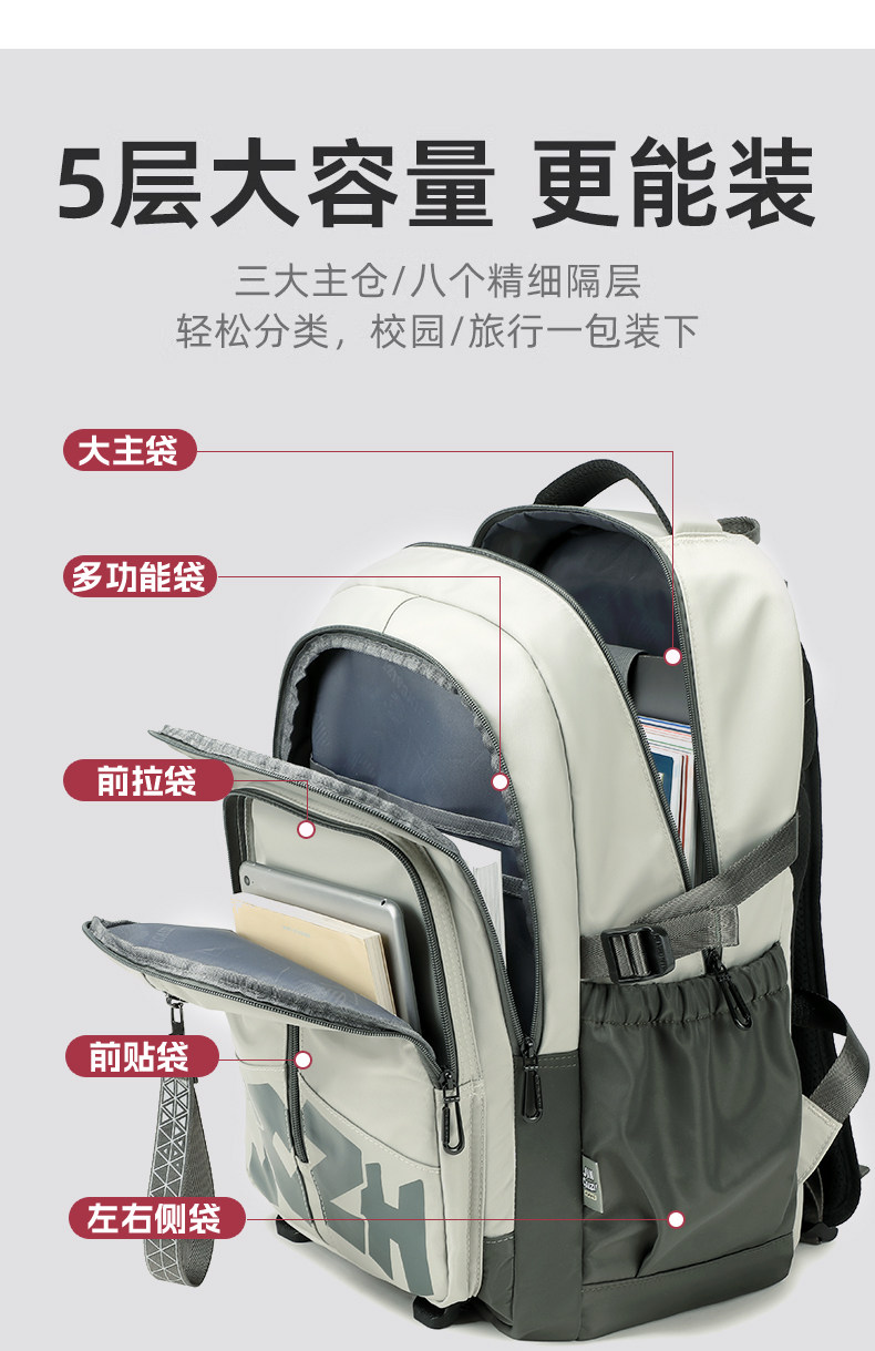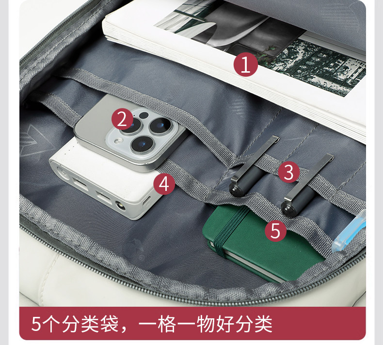 Internal Structure Mesh Bag,Patch Pocket,Cell Phone Bag,Main Bag,Dark Grid,Laminated Zipper Bag,Computer Pocket,Camera Pocket,Certificate Slot