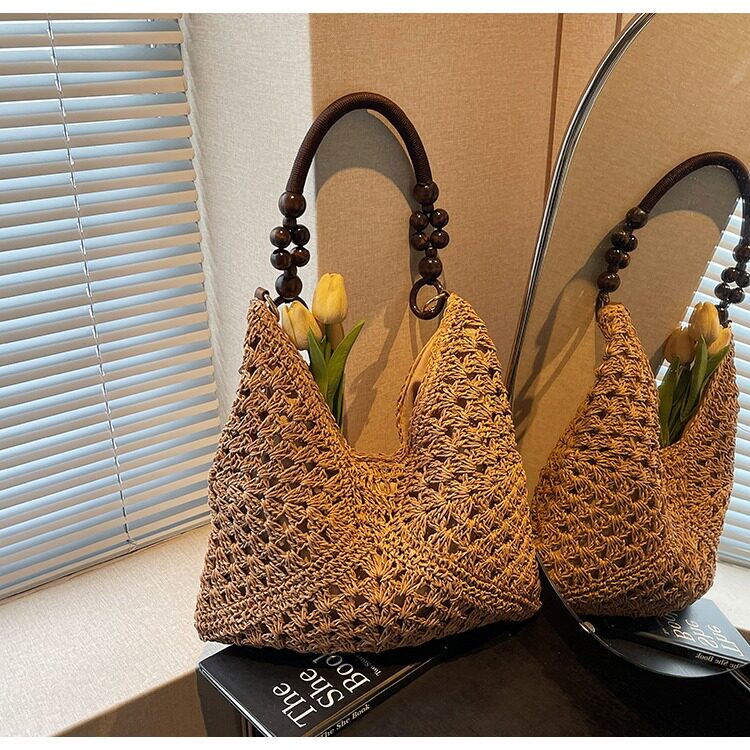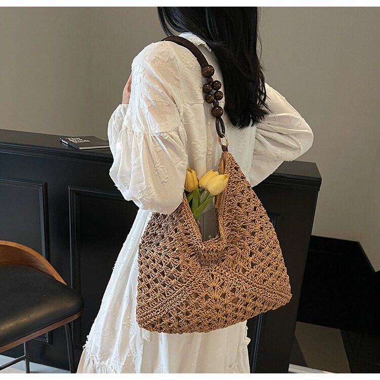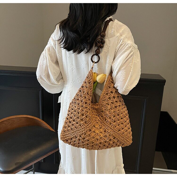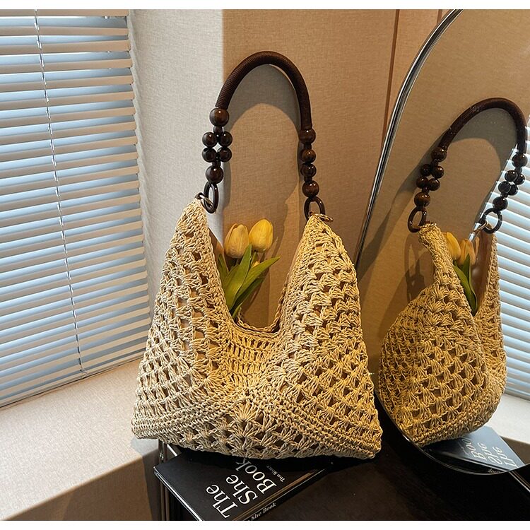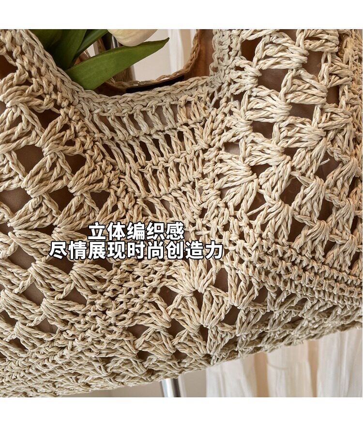 Summer straw bag for women 2026 new seaside vacation beach hollow shoulder tote bag woven vegetable basket bag