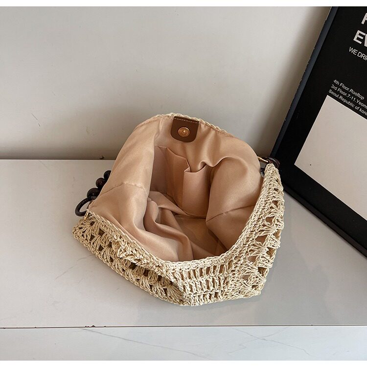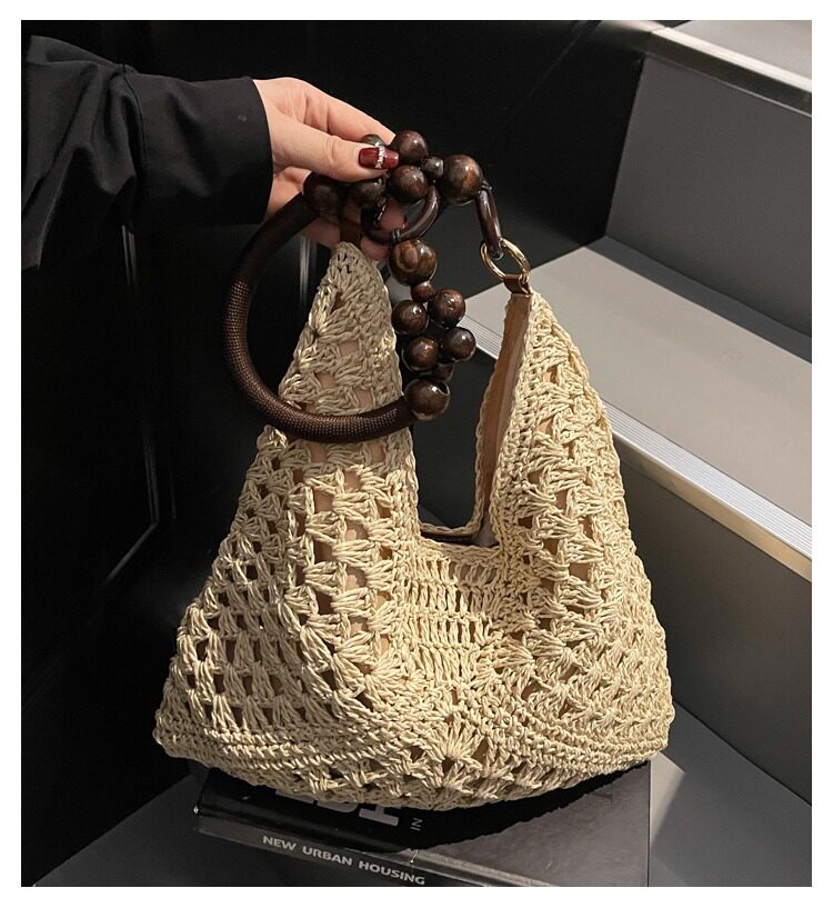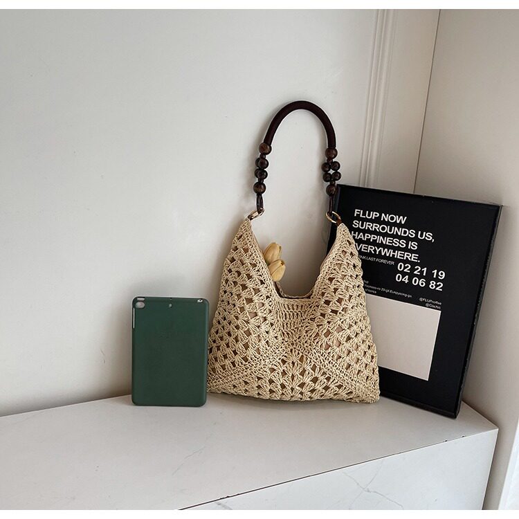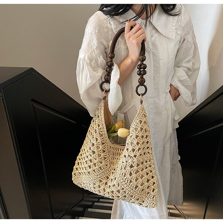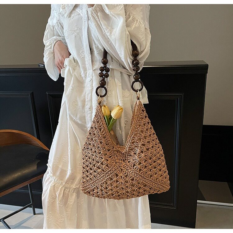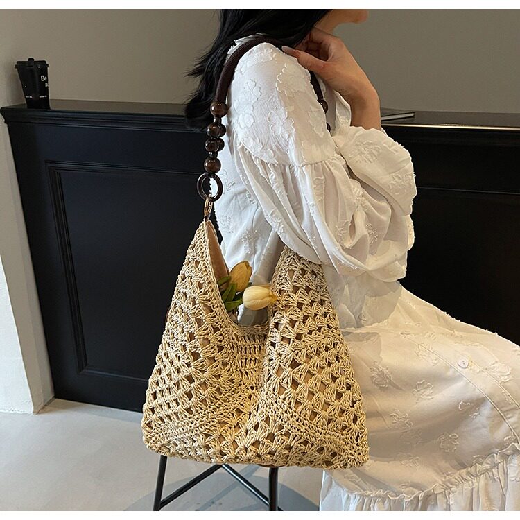 Summer straw bag for women 2026 new seaside vacation beach hollow shoulder tote bag woven vegetable basket bag