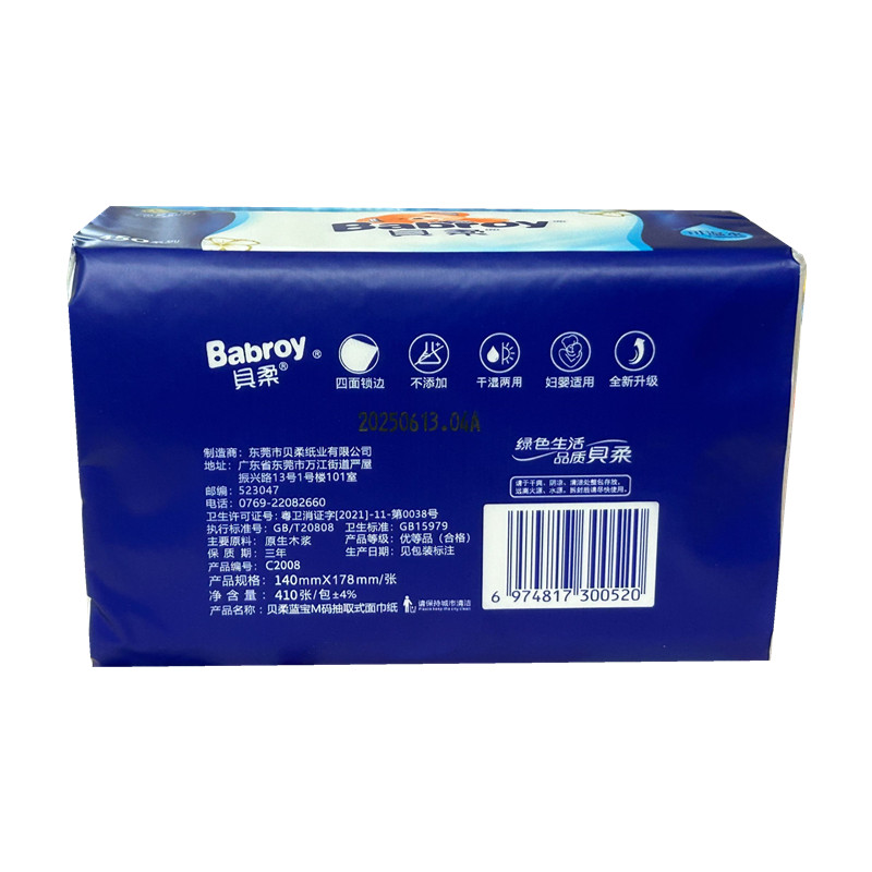 Beirou paper towels 410 sheets, 5-layer wet and dry removable raw wood pulp skin-friendly and wettable kitchen and restaurant 80 packs