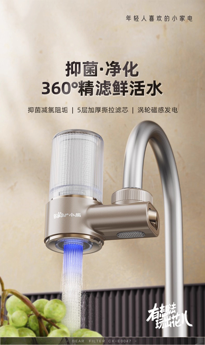 Faucet Water Purifier, Household Tap Water Filter, Ultrafiltration Purifier, Kitchen Universal Little Bear Pre-Filter Water Purifier