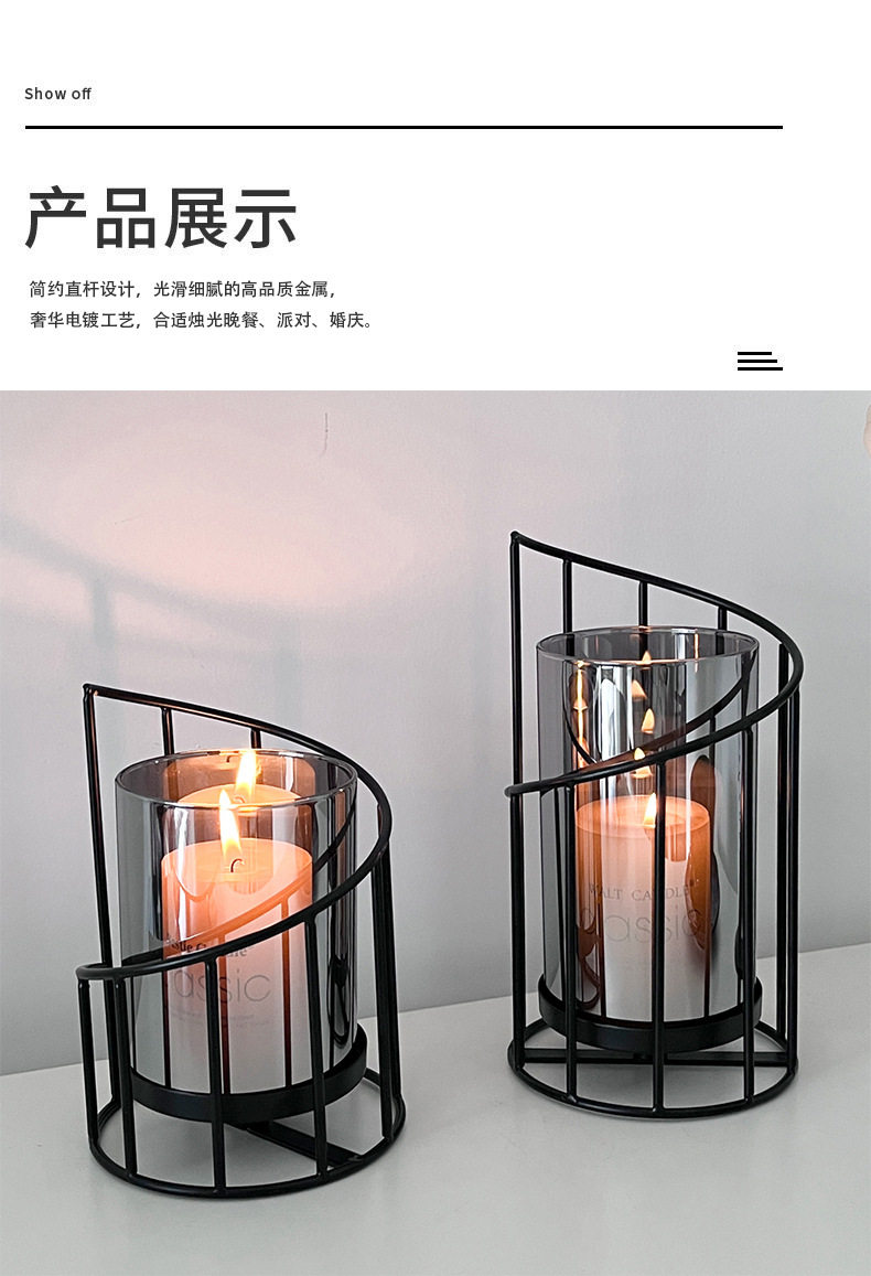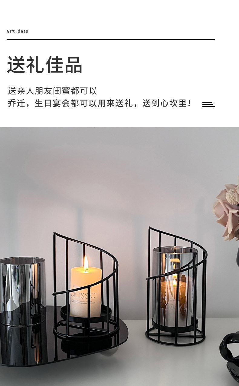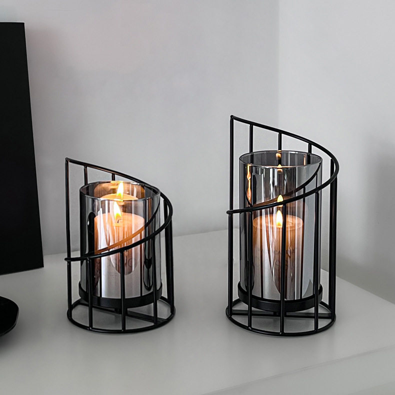 Light Luxury Ornaments, Simple and Modern European-Style Black Iron Candle Holder, Romantic Atmosphere in the Restaurant, Candlelight Dinner Decoration