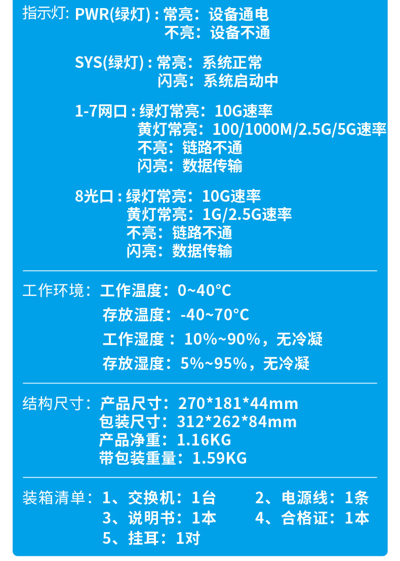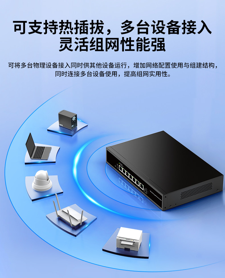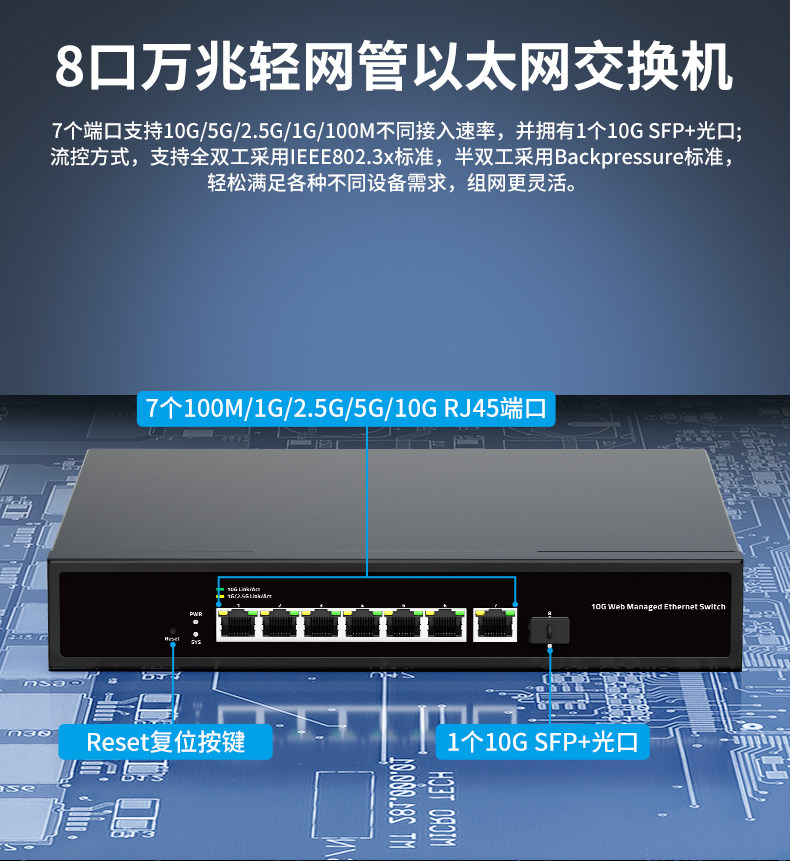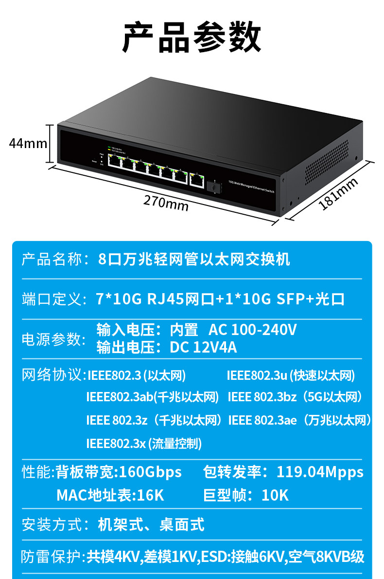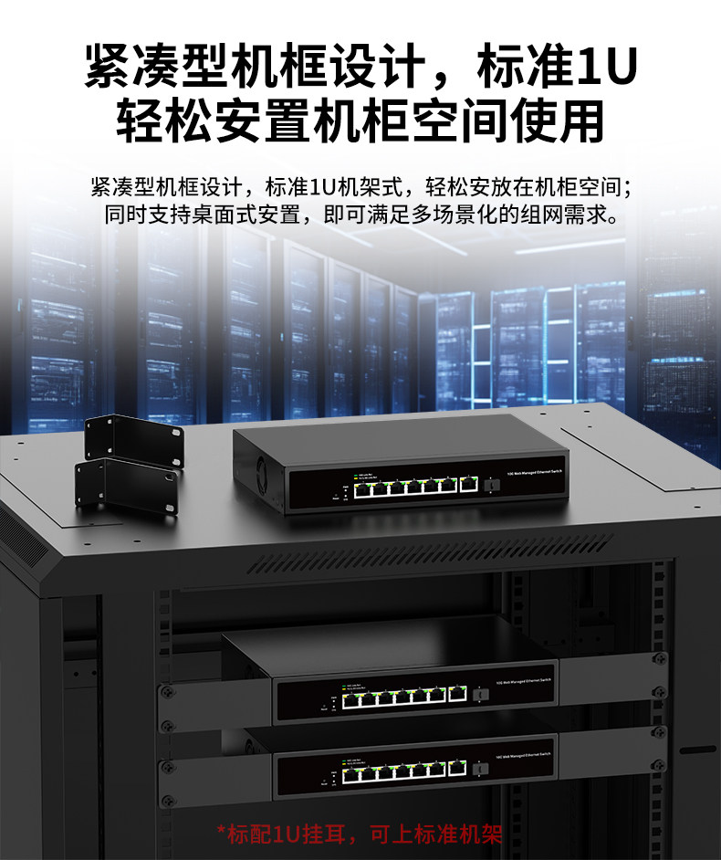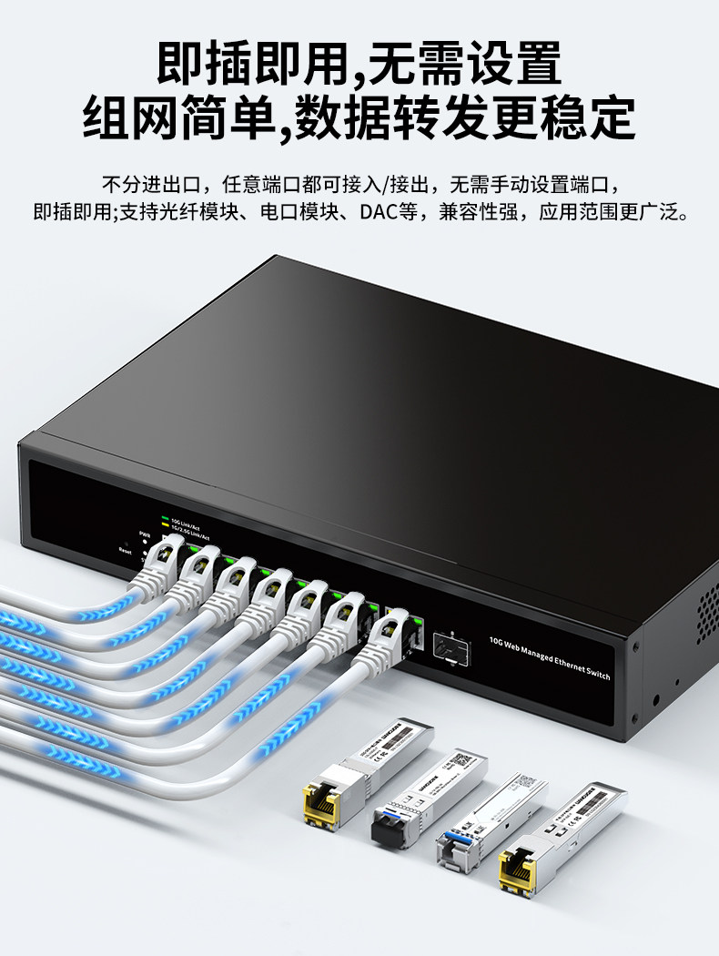 Hongya Weishi Light Network Tube 10g Switch 8-Port + 10g Light Web Management Vlan Split High-Speed 10G/2.5G/1G Optical Port Home Network Server Nas 1U Rack Installation