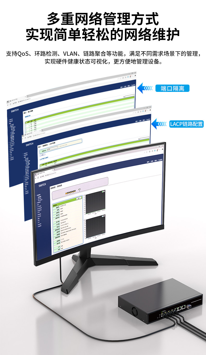 Color Classification Web Light Network Tube 7 10g Electrical Ports + 10g Optical Switch