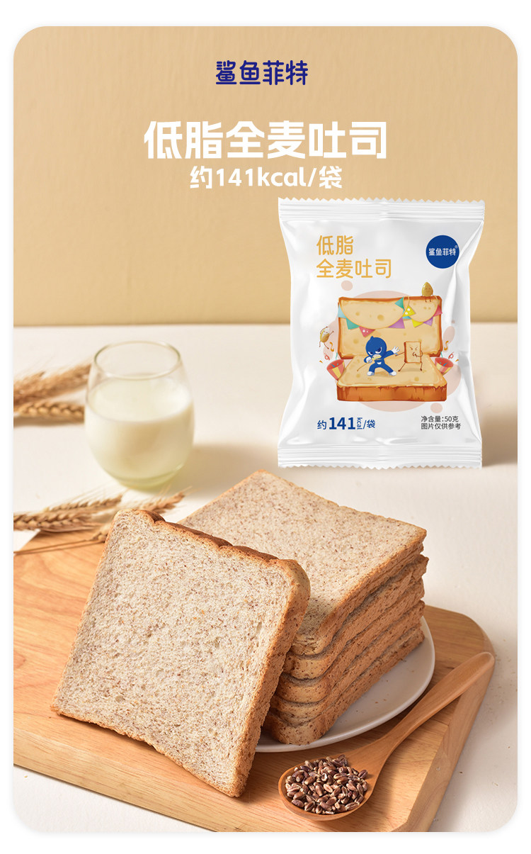 Shark Fit Whole Wheat Thick-Cut Toast Bread Low in Sugar, No Artificial Sweeteners, Low-Fat, Light Meal, Breakfast, Meal Replacement, Filling Staple Food