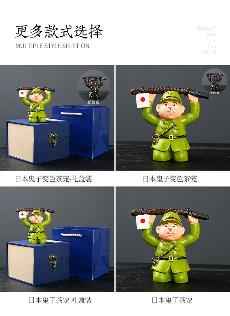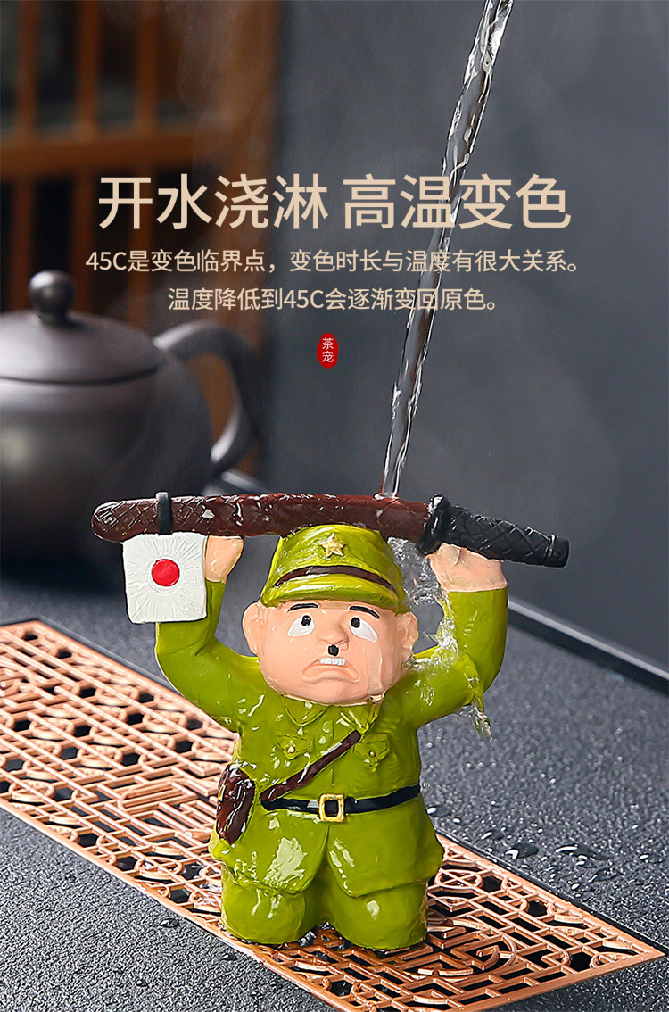 Light Luxury Ornament Japanese Soldier Kneeling Surrender Color-Changing Tea Pet Ornament Tea Table Tea Tray Decoration Stress-Relief Ornament