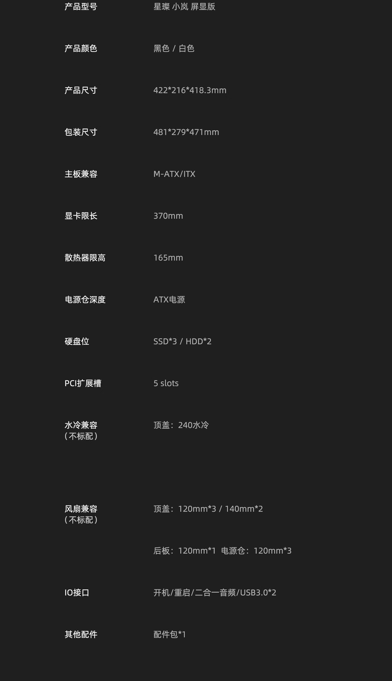 Patriot Starcarnal Starcarnal Small Screen Display Version Sea View Room Case Matx Desktop 240 Water Cooling Computer Case