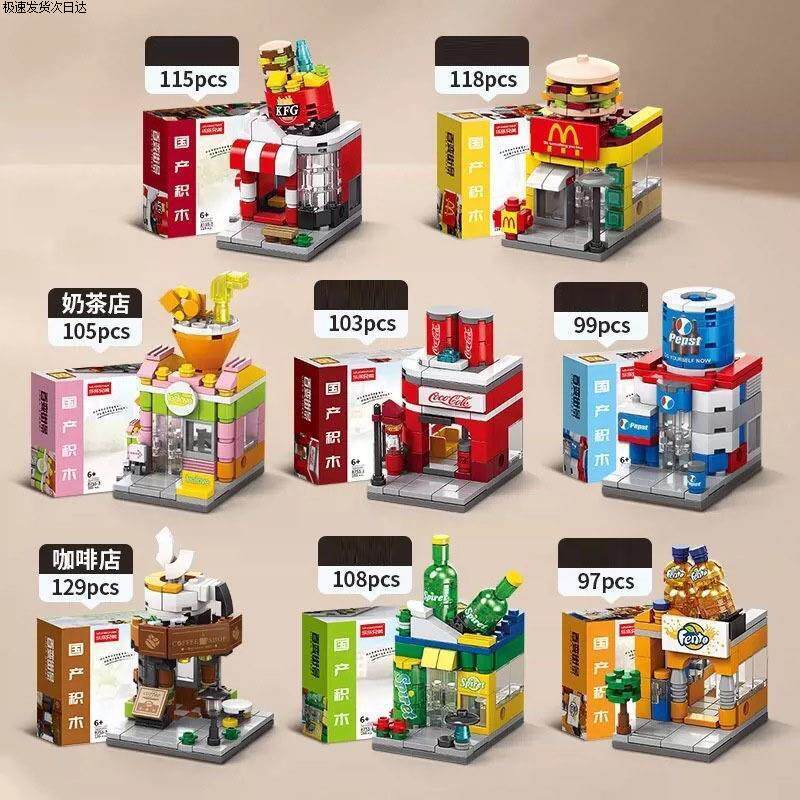 Lekuai Dining Street Indoor Scene Mini City Street View Building Blocks Educational Assembly Street Stall Toys High Difficulty 3D