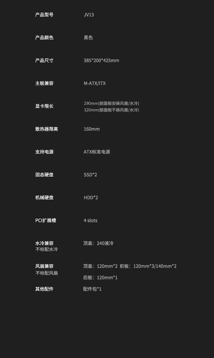 Color Classification Jv13 Black [Matx/240 Water Cooling],Jv13 White [Matx/240 Water Cooling],Jv13 Black + Large 4Pin Color Fan X3,Jv13 Black + Large 4Pin Color Fan X6,Jv13 White + Large 4Pin Color Fan X3,Jv13 White + Large 4Pin Color Fan X6