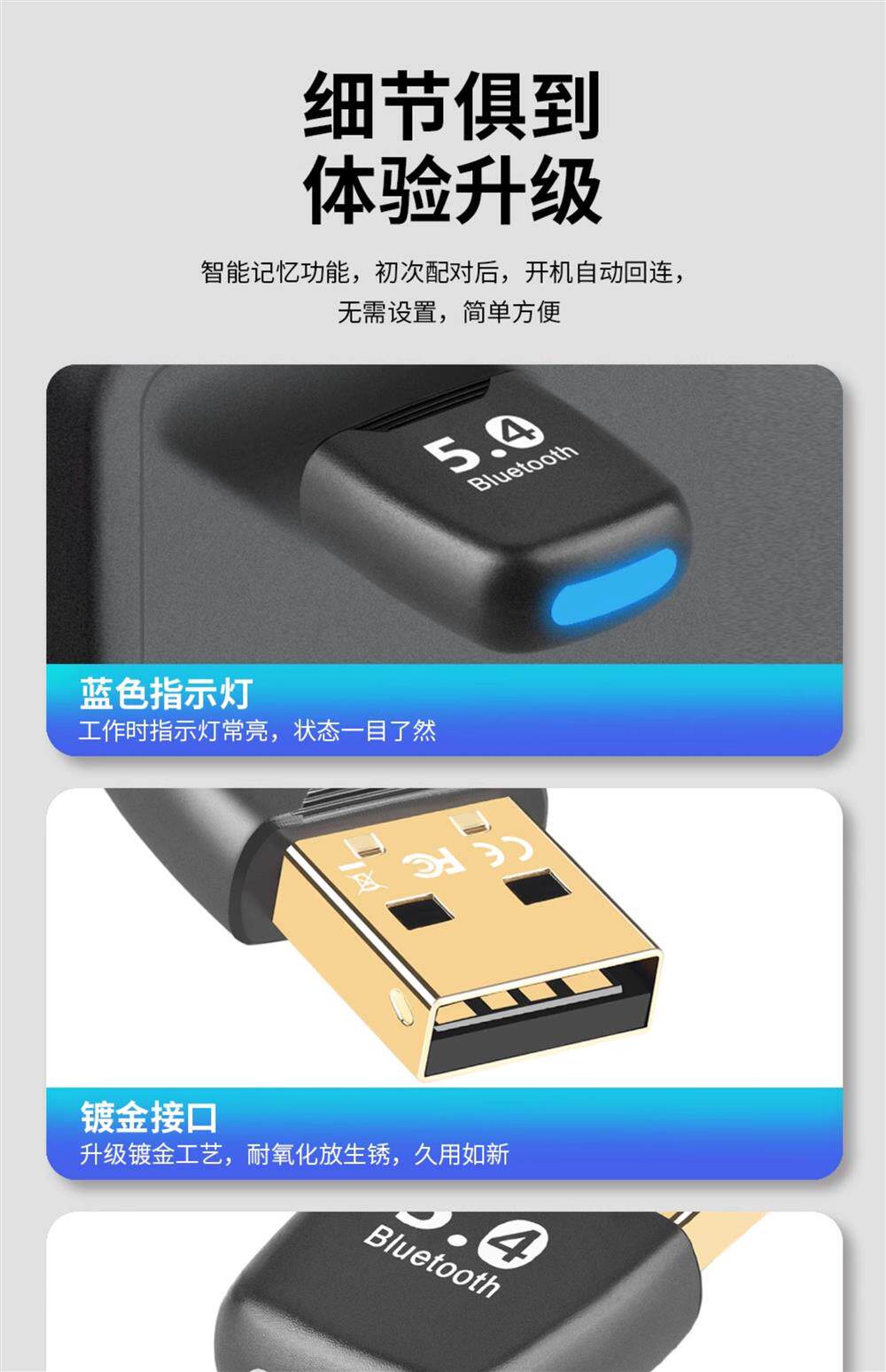 Desktop Computer Bluetooth Receiver 5.4 Driver-Free Mouse Keyboard Controller Headset Speaker USB Bluetooth Adapter Bluetooth 5.4 Adapter New Dual-Mode High Sound Quality Suitable for Win1110