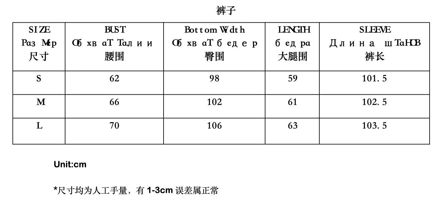 Outseam (cm) 99 cm 101.5 cm 104 cm 106.5 cm 109 cm