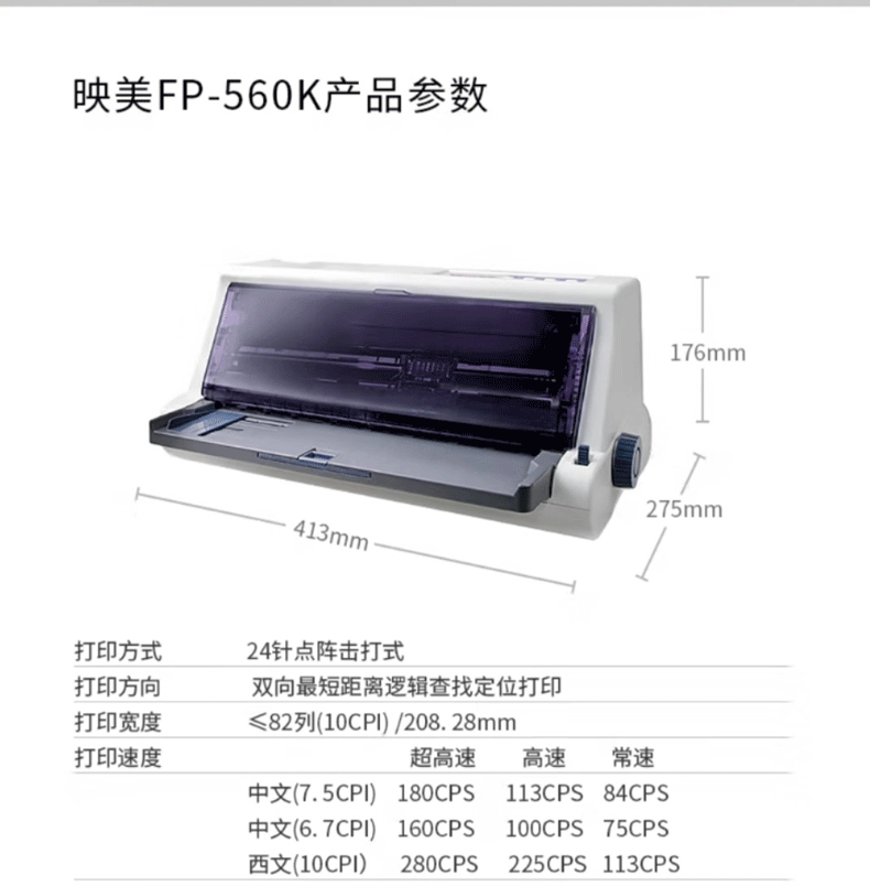 Yingmei 530Kiii+/Fp-560K 24-Pin 82 Rows High-Speed Smart Receipt Document Dot Matrix Printer
