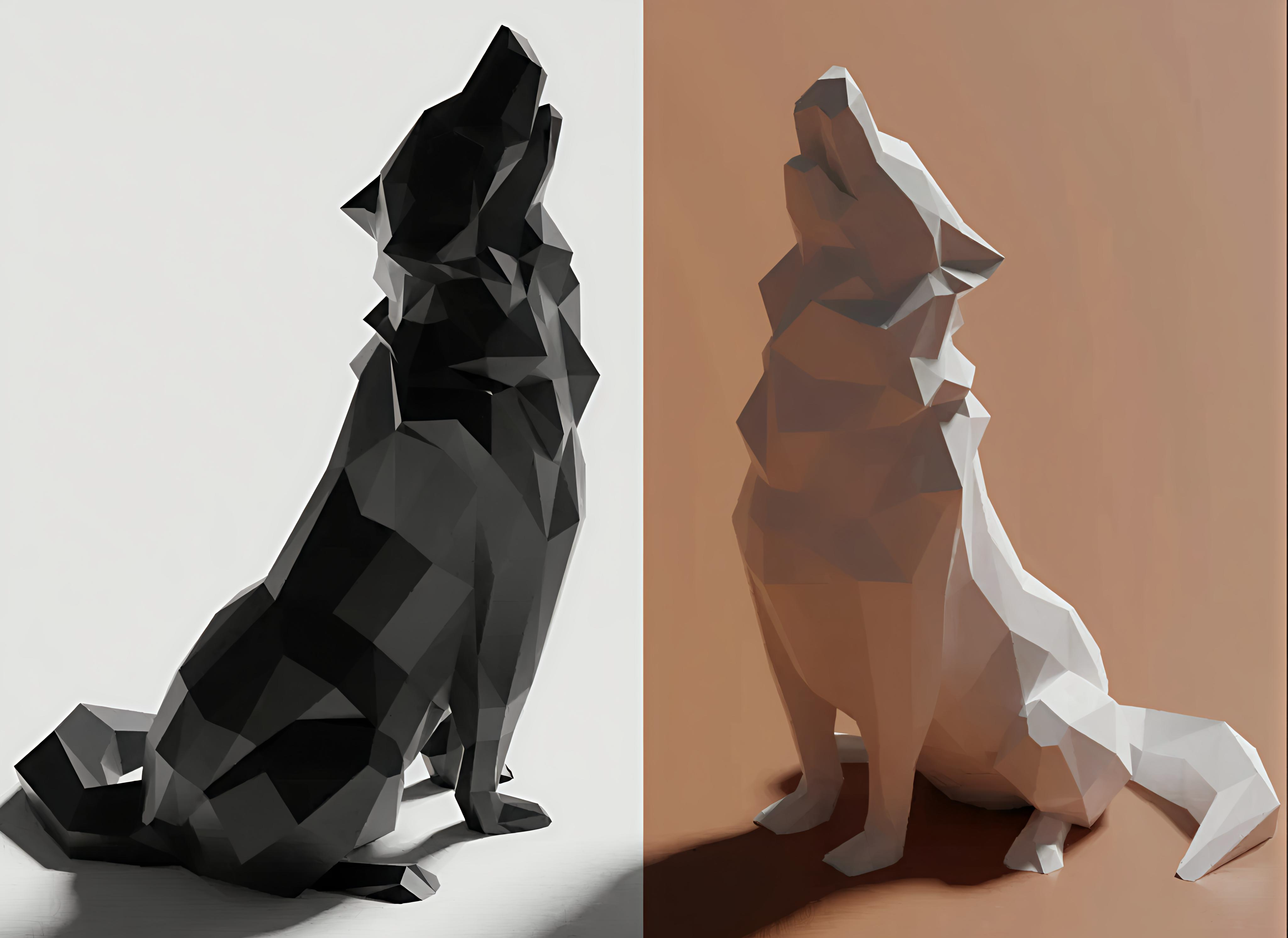 Black and White Minimalist High-End Version Howling Wolf Popular Art 3D Trendy Sculpture Geometric Model