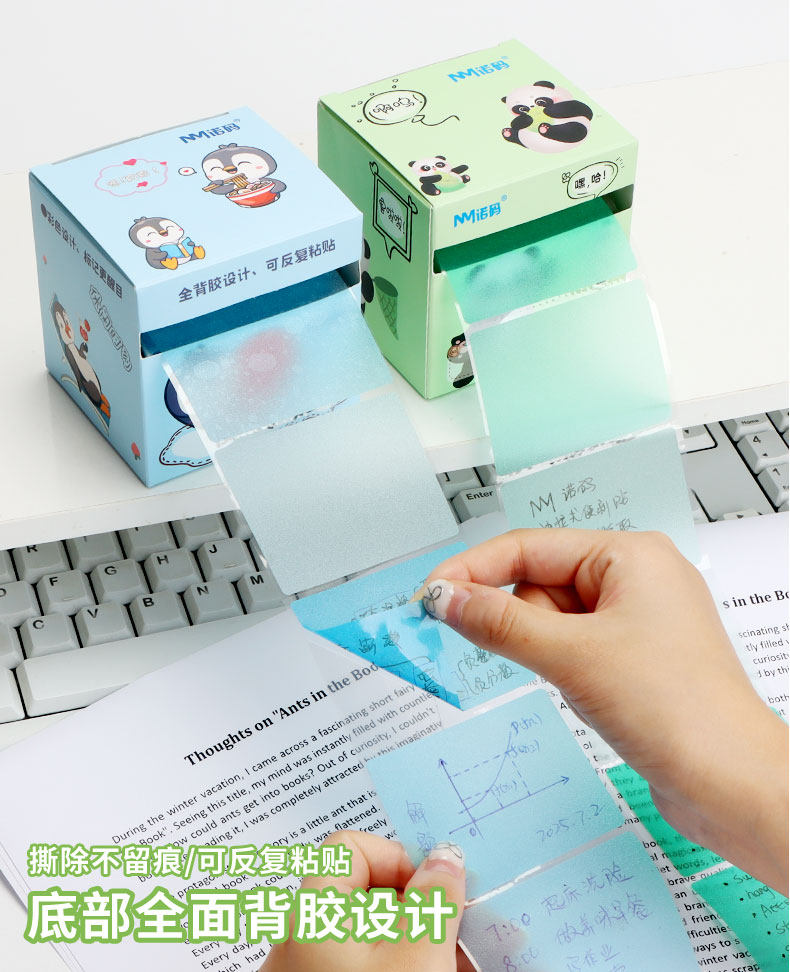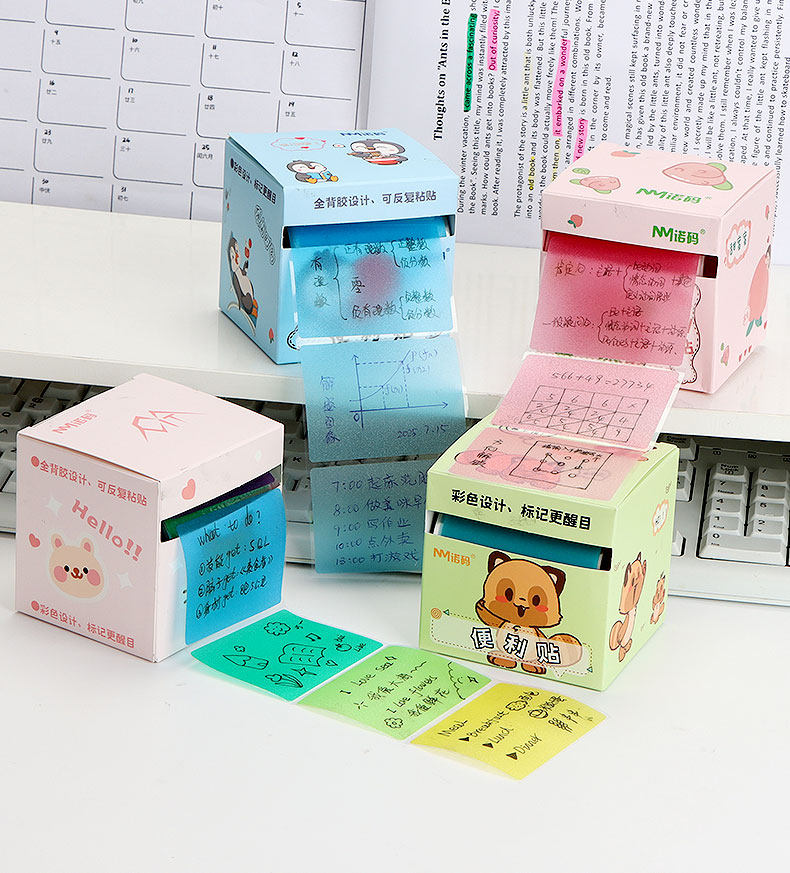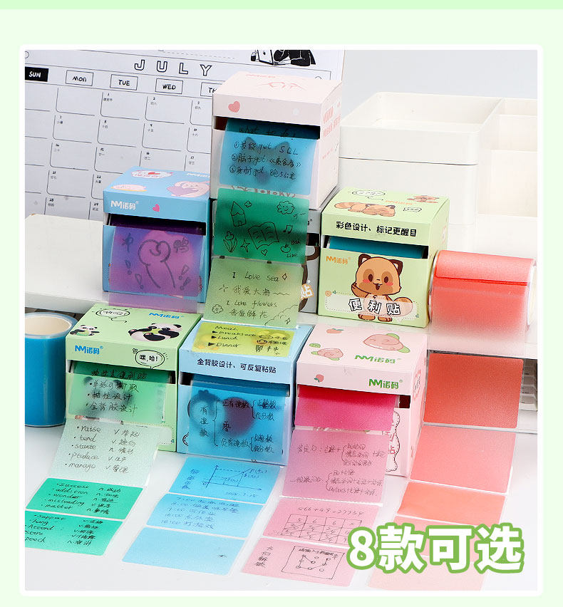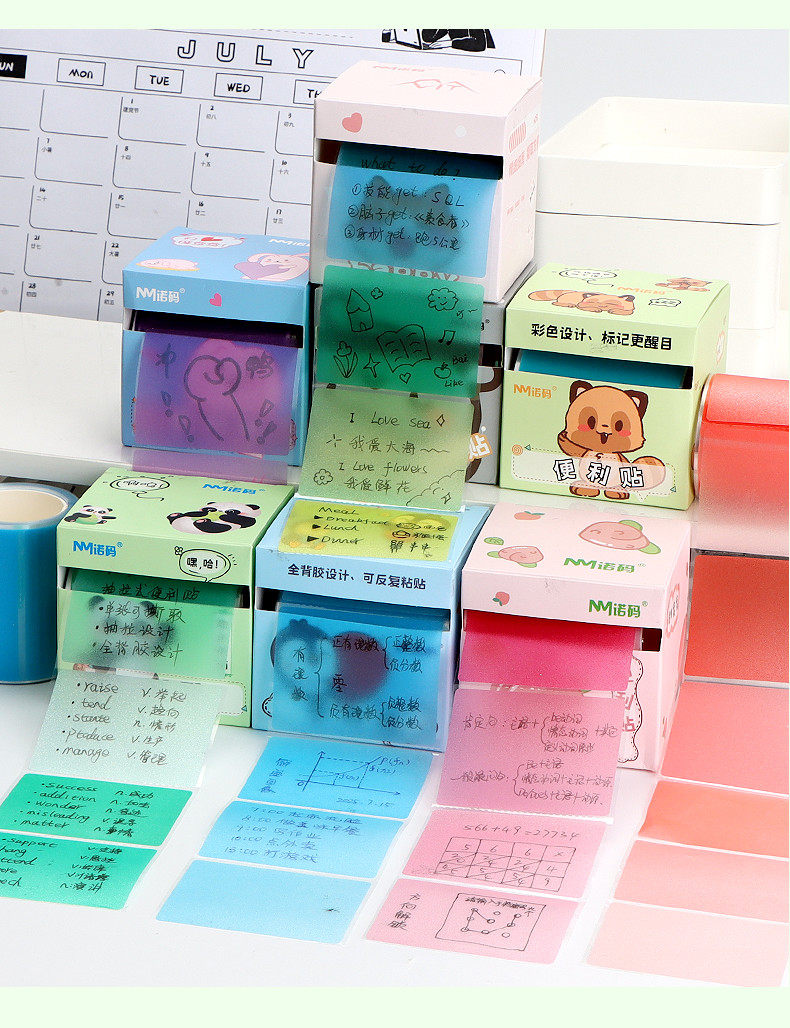 Noma Gradient Pearlescent Pull-Out Sticky Notes Dopamine-Colored Transparent Sticky Notes with Strong Stickiness for Junior High School Students to Learn Office Artifacts for Primary School Students Special High-Value Stationery Rainbow Purple Blue Green