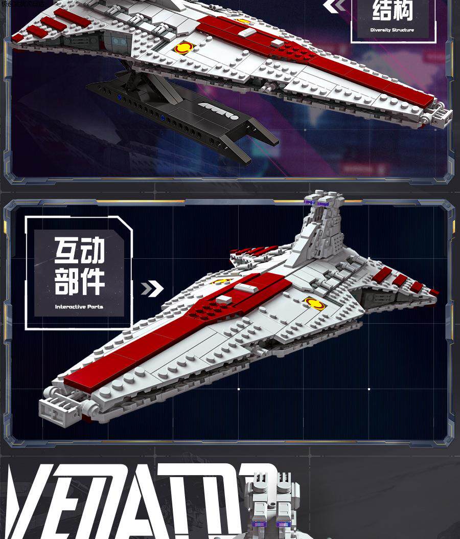 Star Battleship Space Destroyer High-Speed Starship Building Blocks Large Spaceship DIY Assembly Model Ornament Suitable for Lego 3D